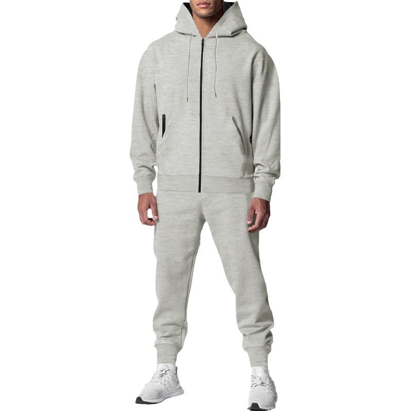 Amazon Cross border Autumn/Winter Men's Solid Color Long Sleeve Pants Hooded Sports and Leisure Fleece Warm and Comfortable Set for Men