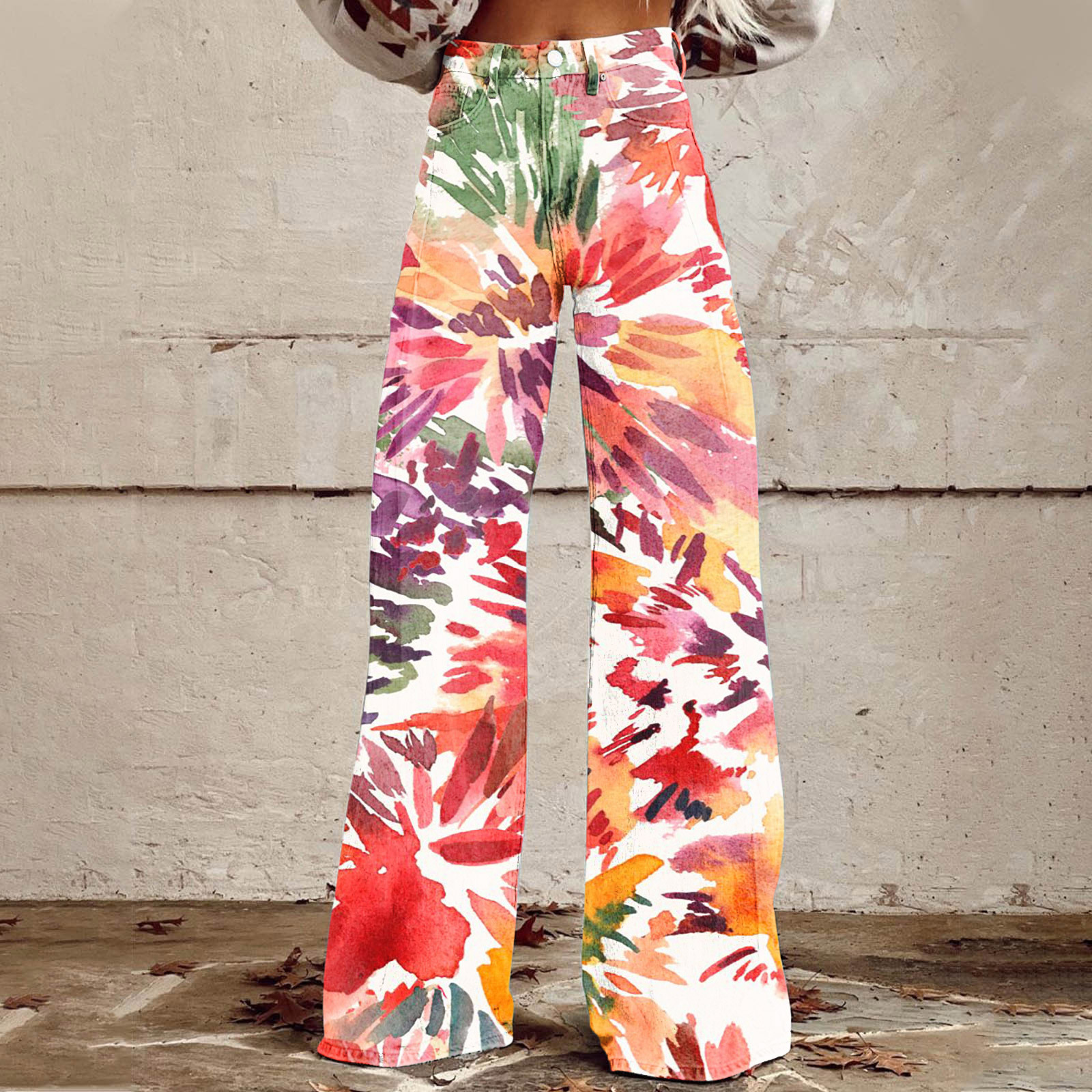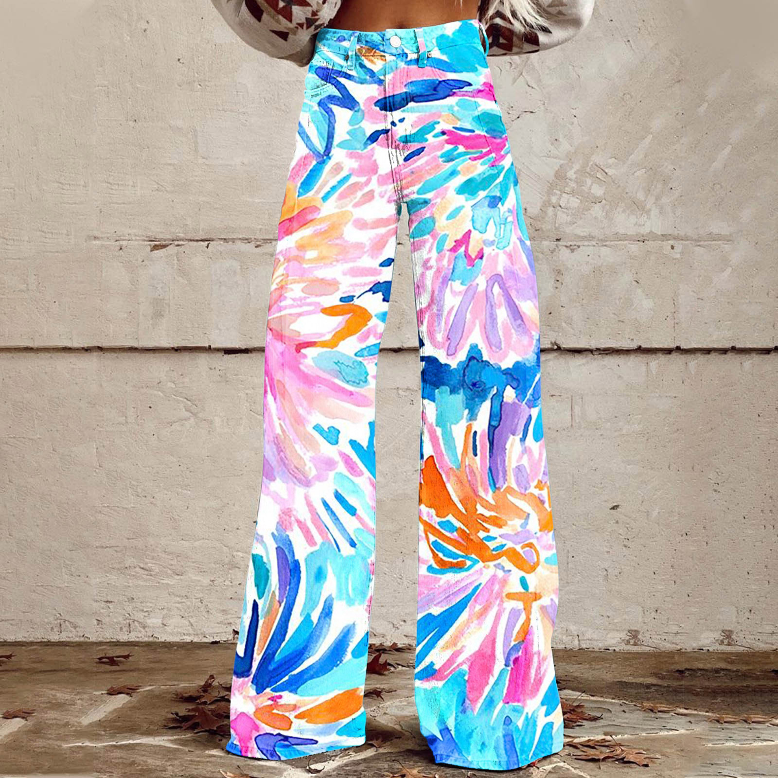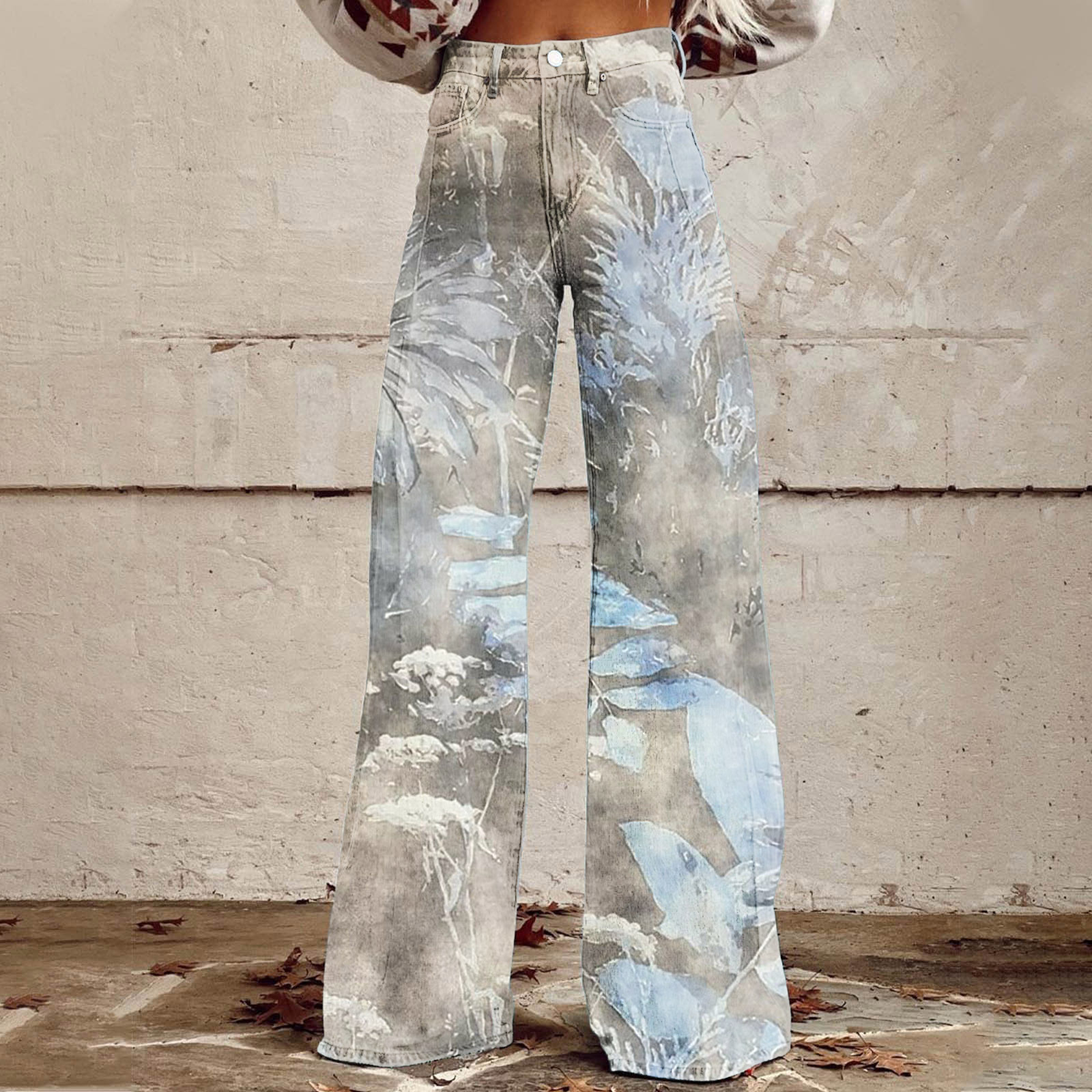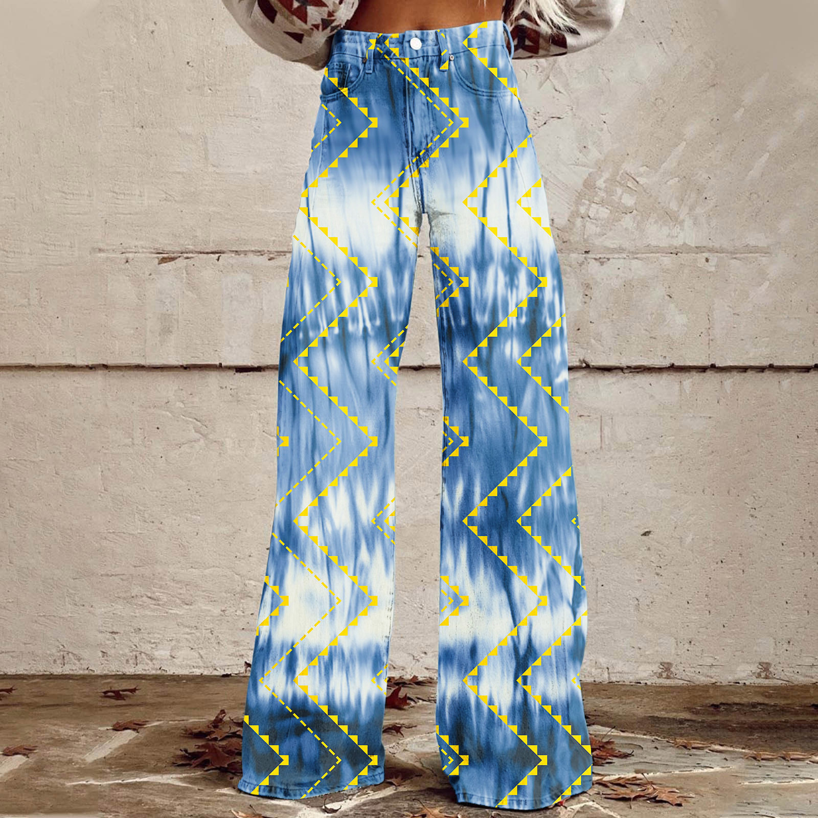 Autumn new gradient wide leg men's and women's sports pants, fashionable imitation denim 3D printed cross-border popular casual pants