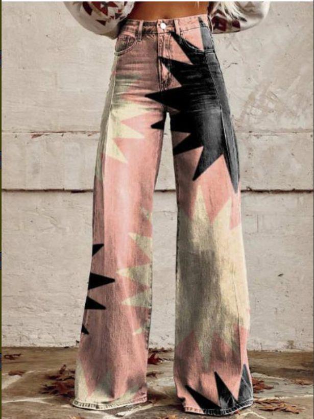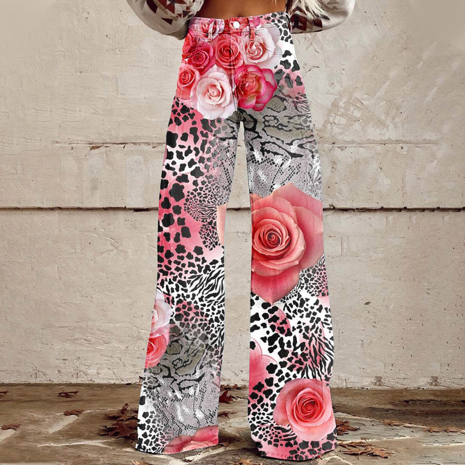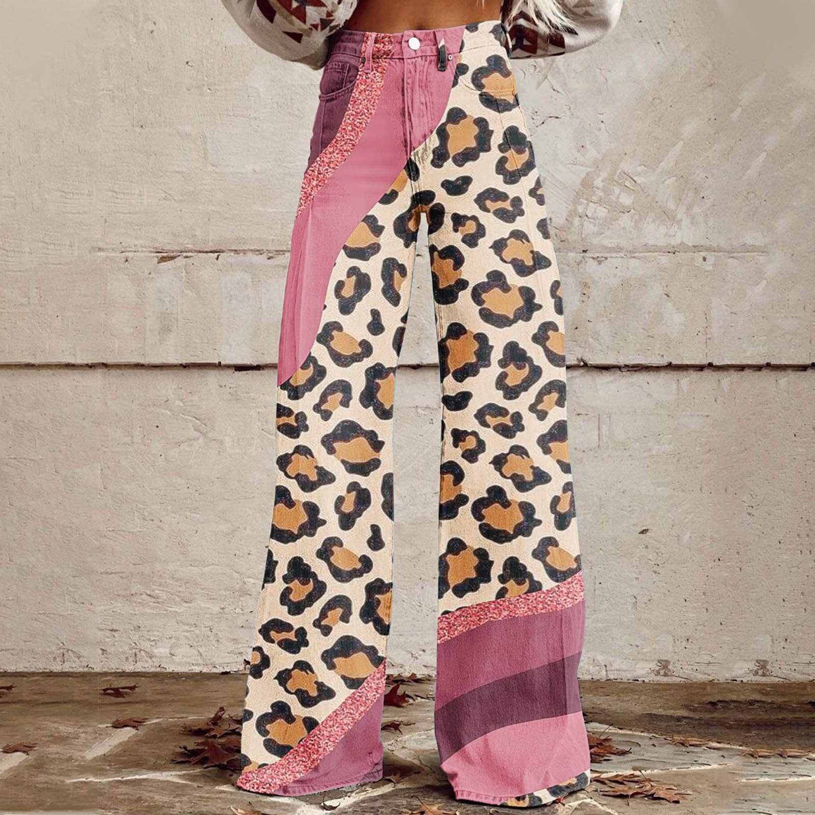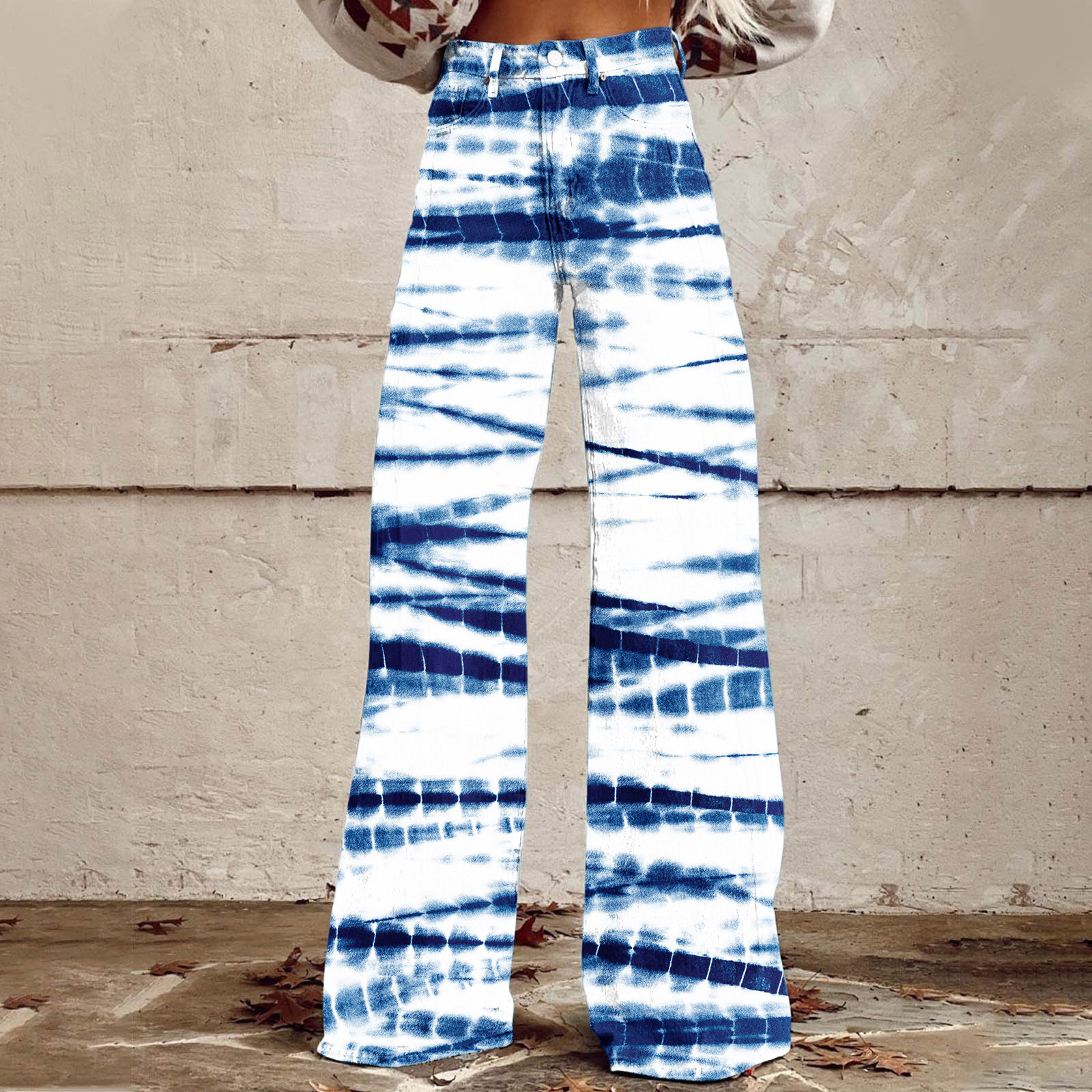 Autumn new gradient wide leg men's and women's sports pants, fashionable imitation denim 3D printed cross-border popular casual pants