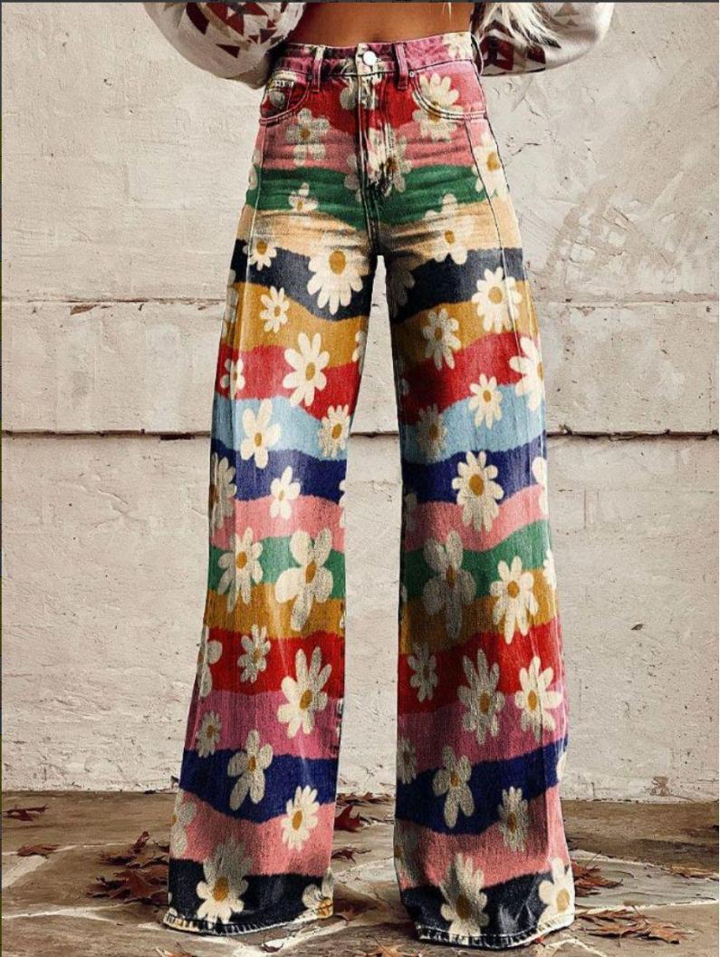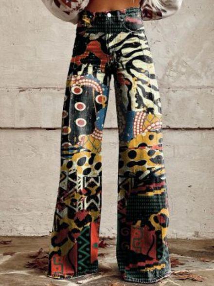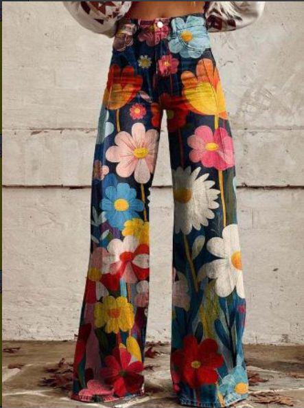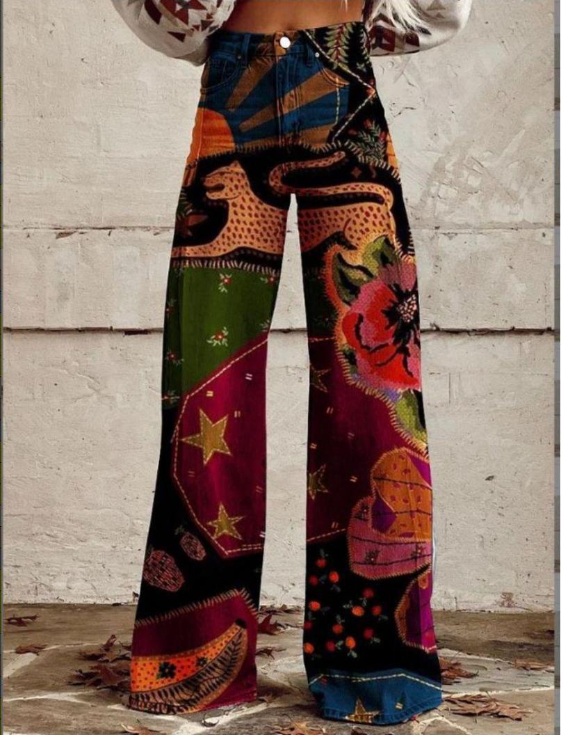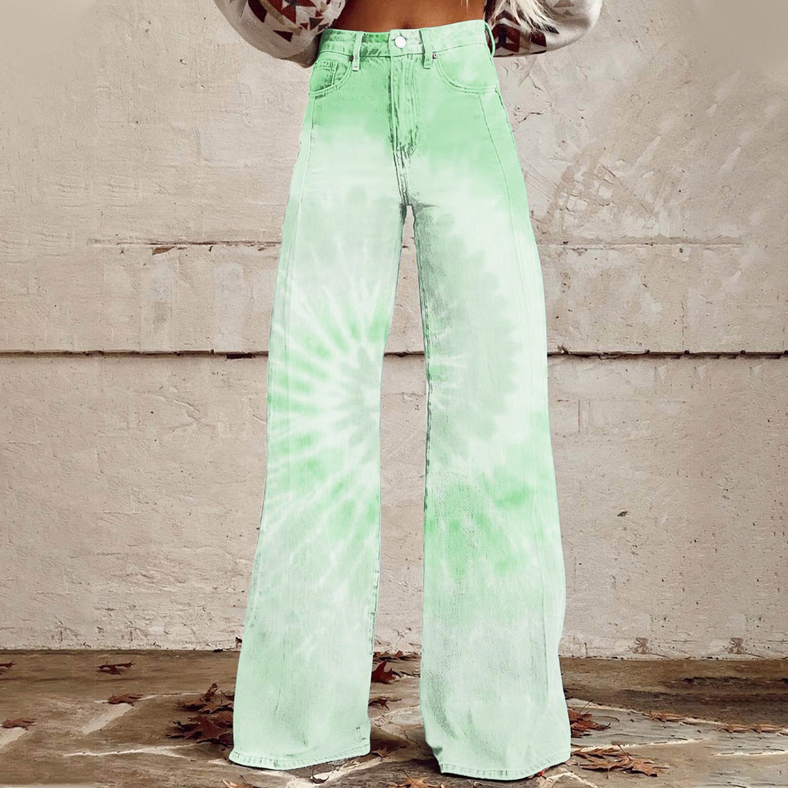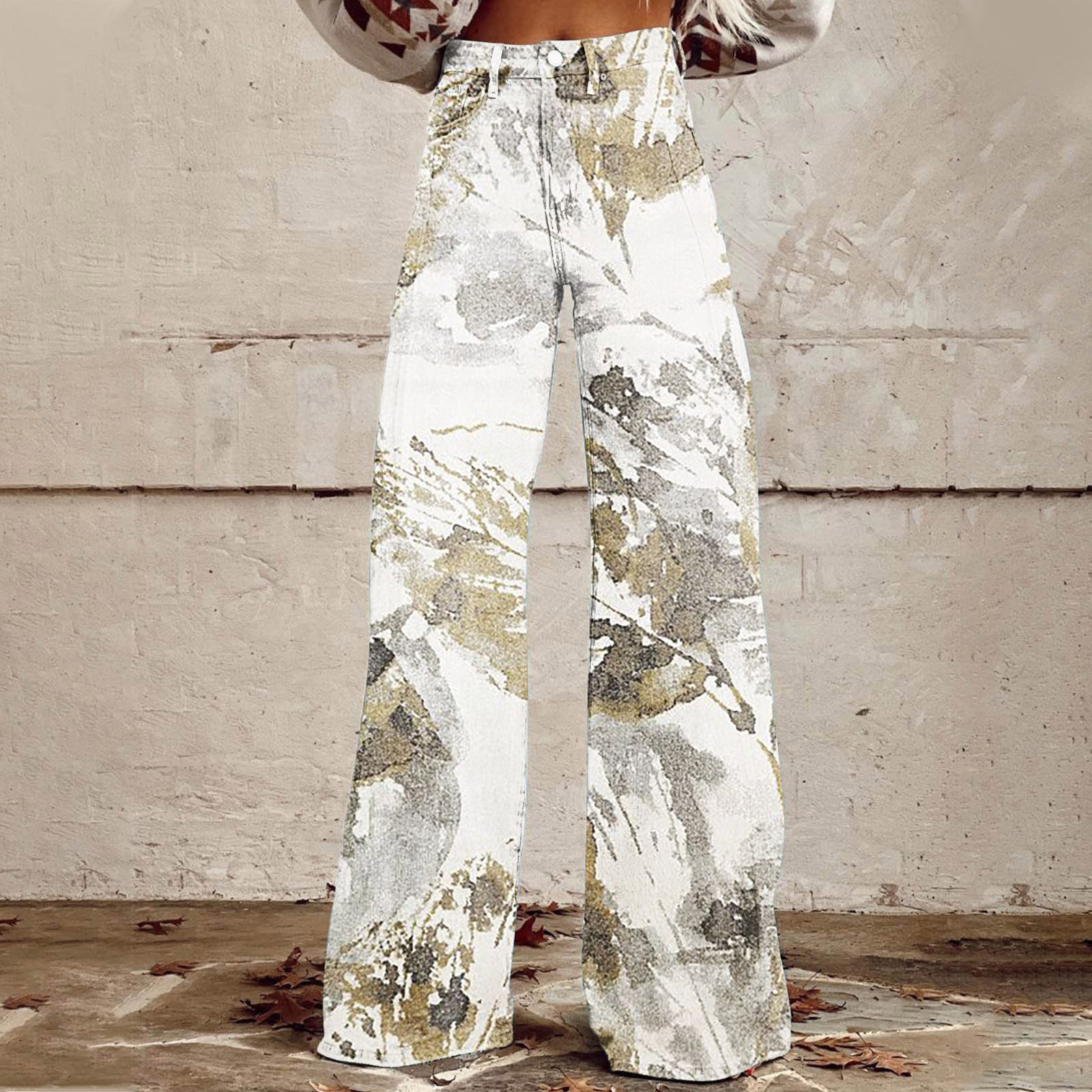 Autumn new gradient wide leg men's and women's sports pants, fashionable imitation denim 3D printed cross-border popular casual pants