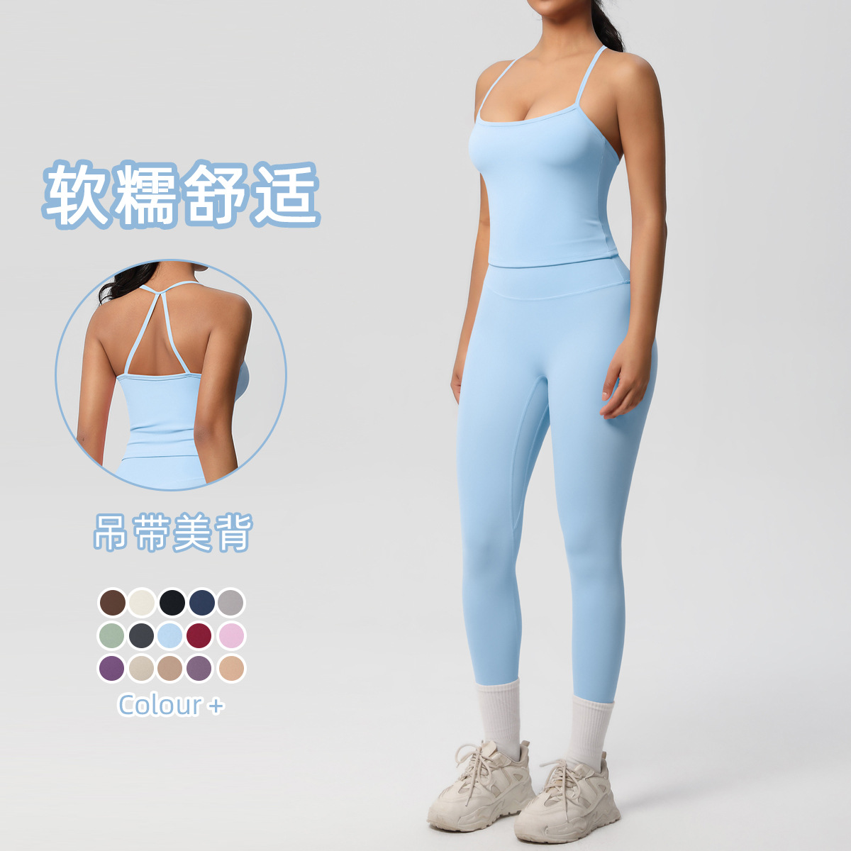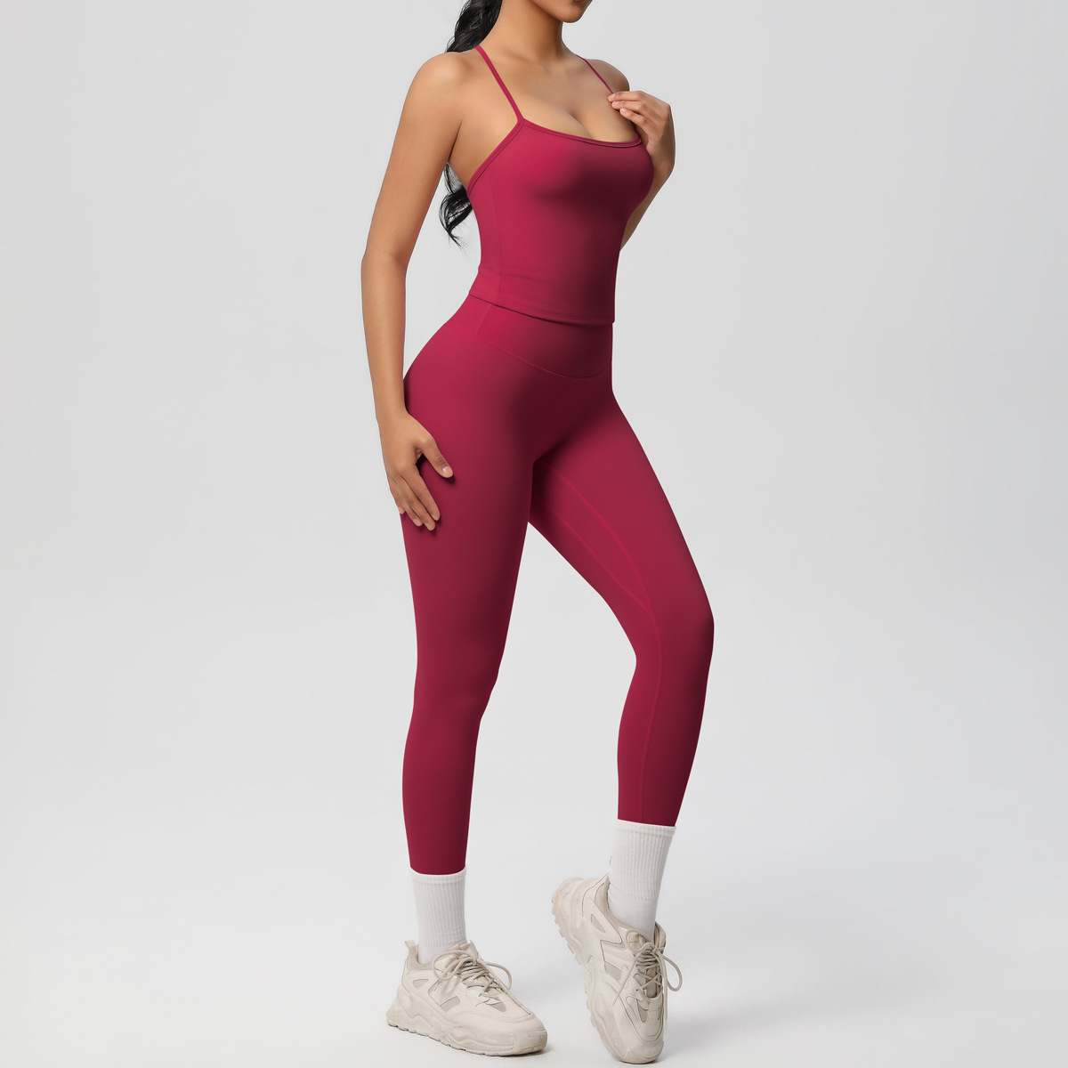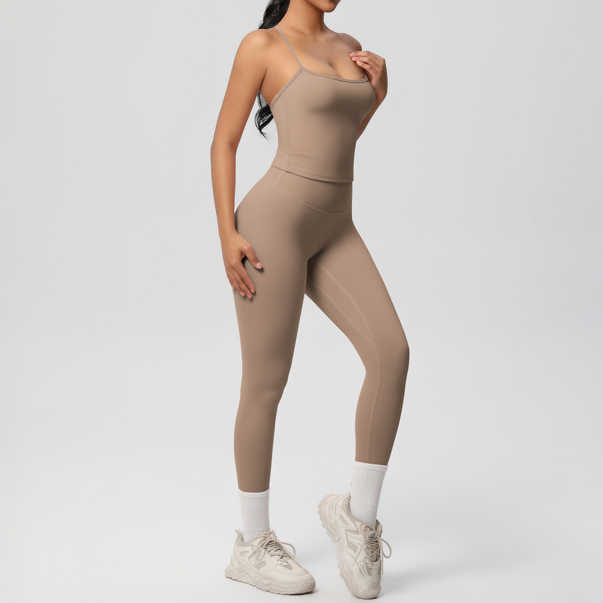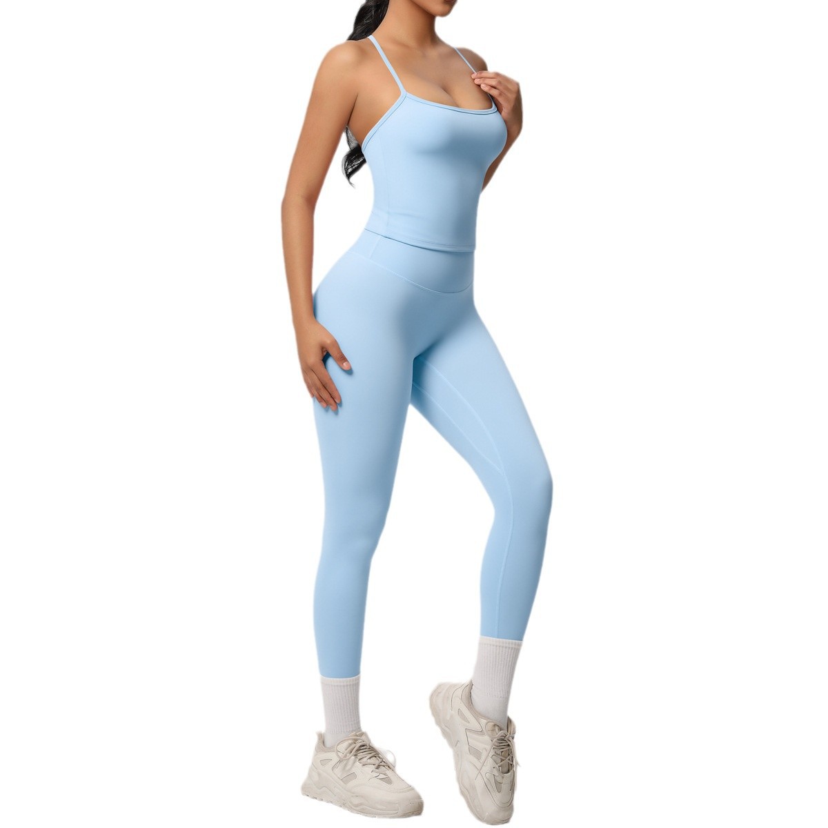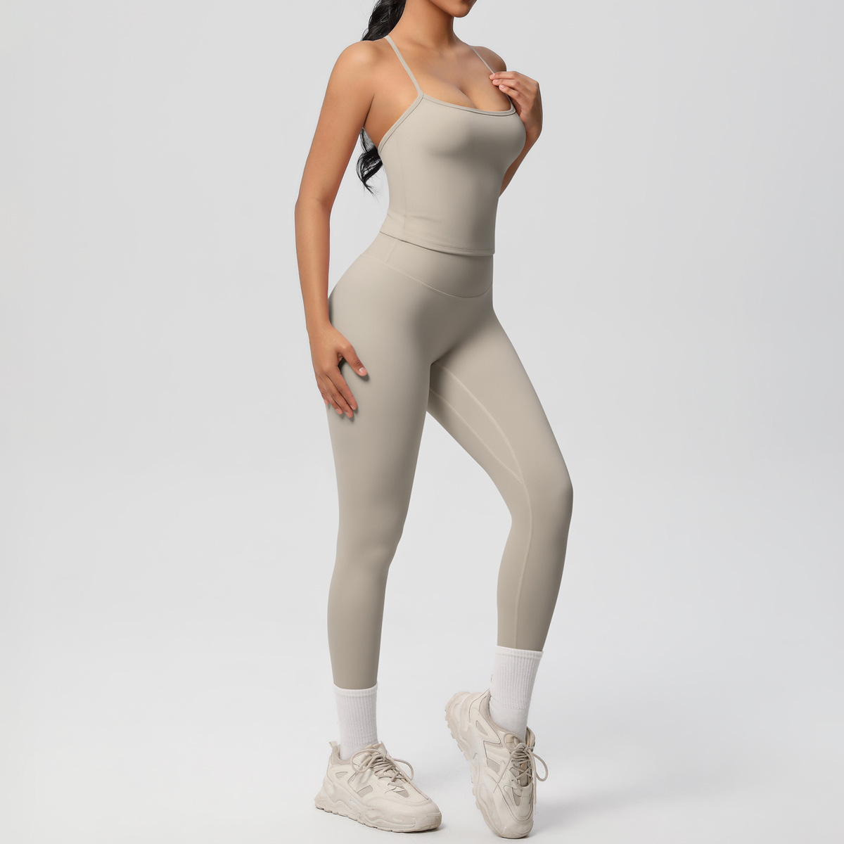 Cross border nude hip lifting fitness pants, waist cinching high waisted sports camisoles, yoga clothes, outdoor leggings, yoga suit for women