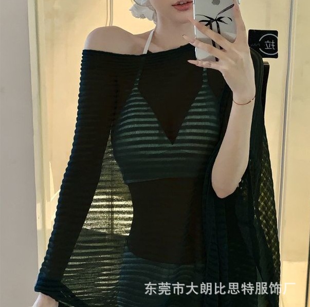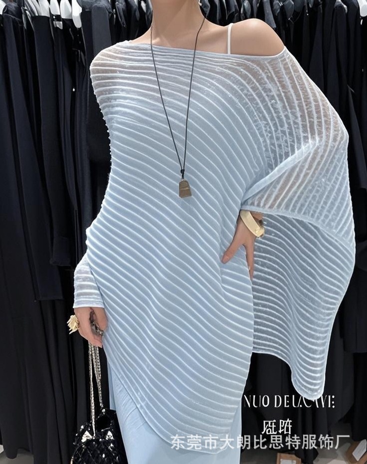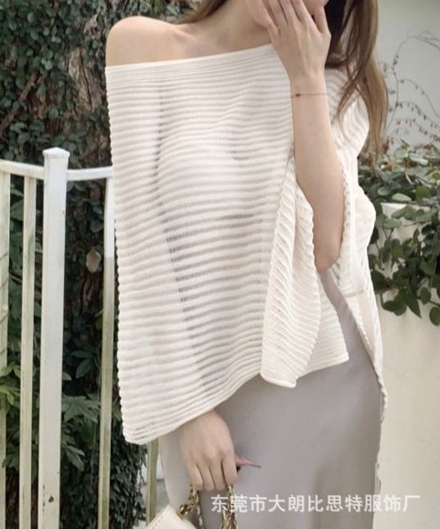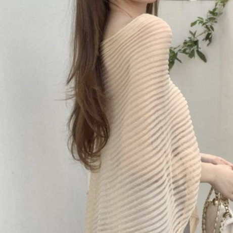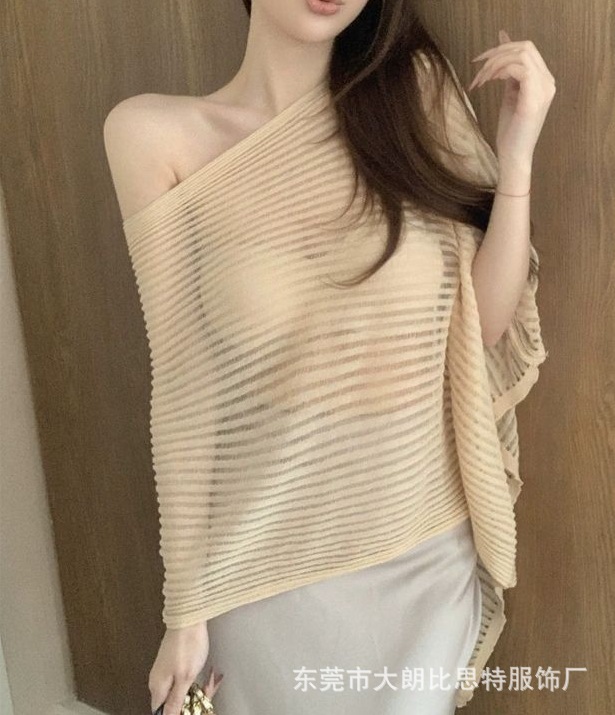 Irregular sun protection cover shirt for women in summer, loose and slimming, sexy perspective knitted shirt top, lazy style shawl