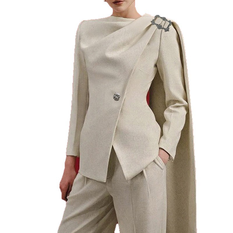 Light mature style design sense suit jacket for women 2025 new style solid color irregular shawl metal texture button suit
