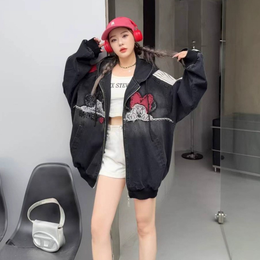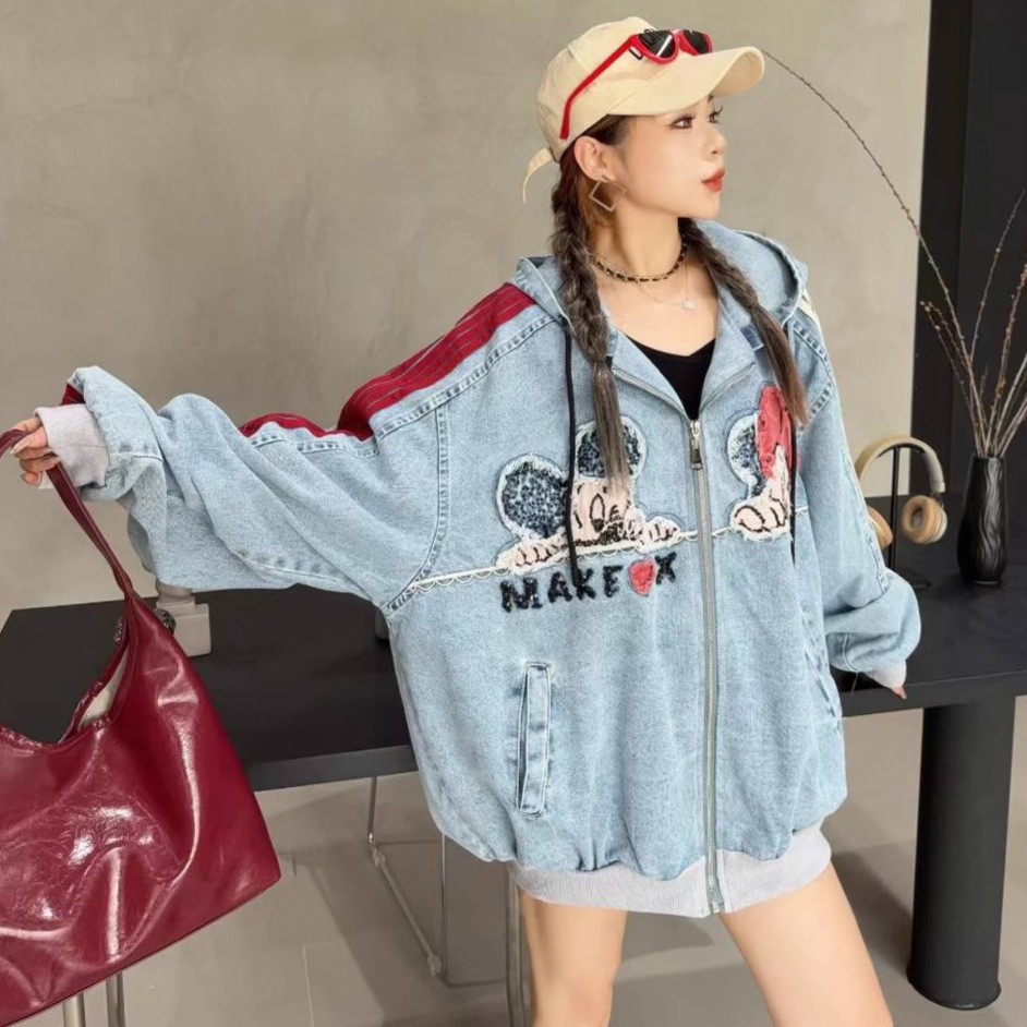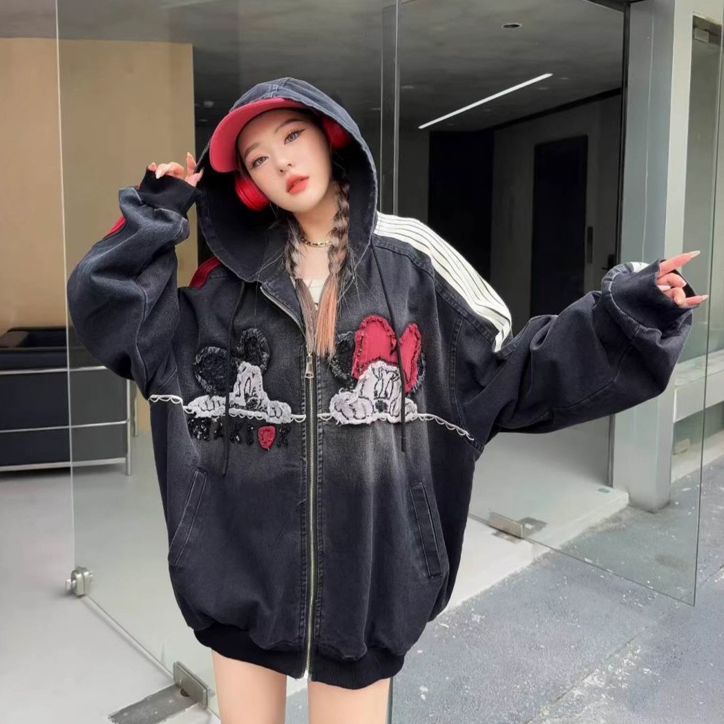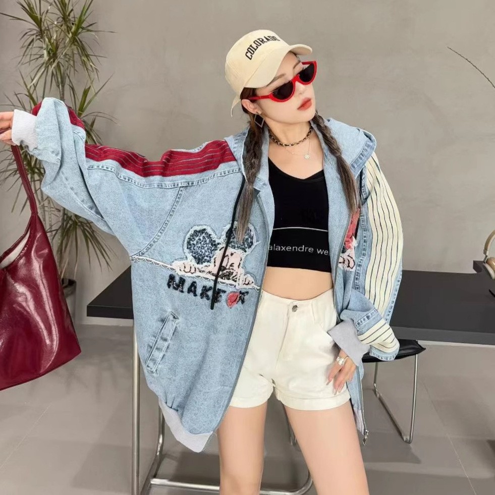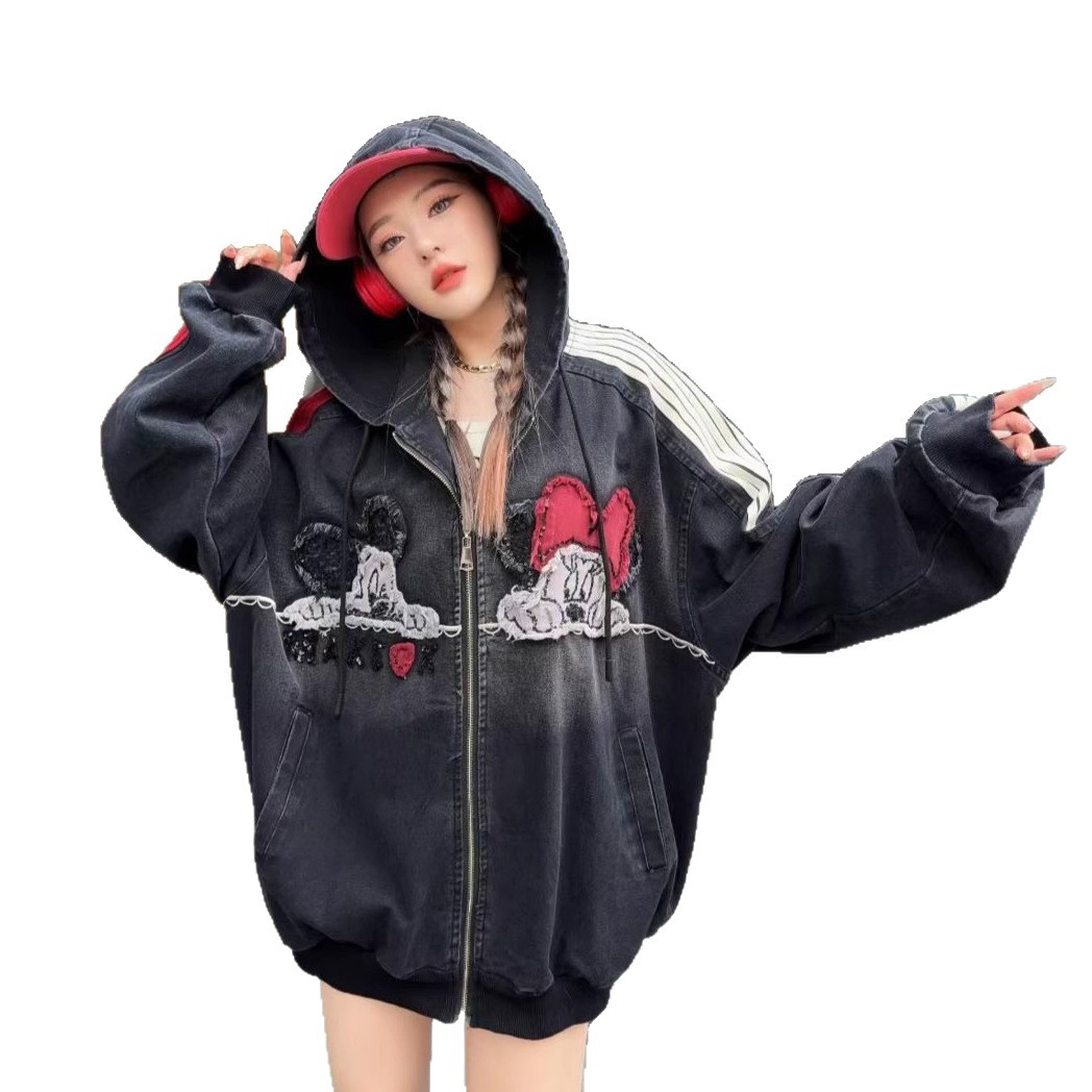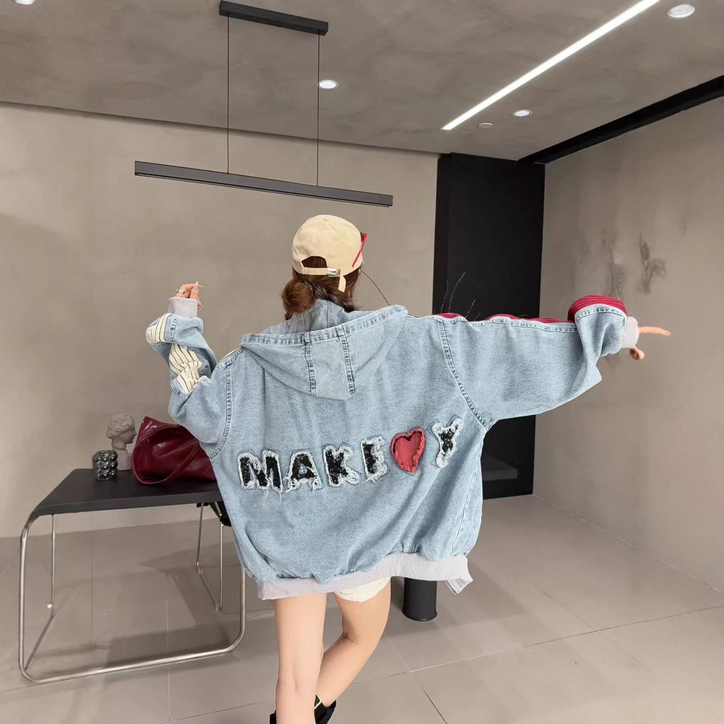 European washed denim jacket for women, 2025 new autumn outfit, fashionable and western-style, hip-hop plus size, high-end American jacket