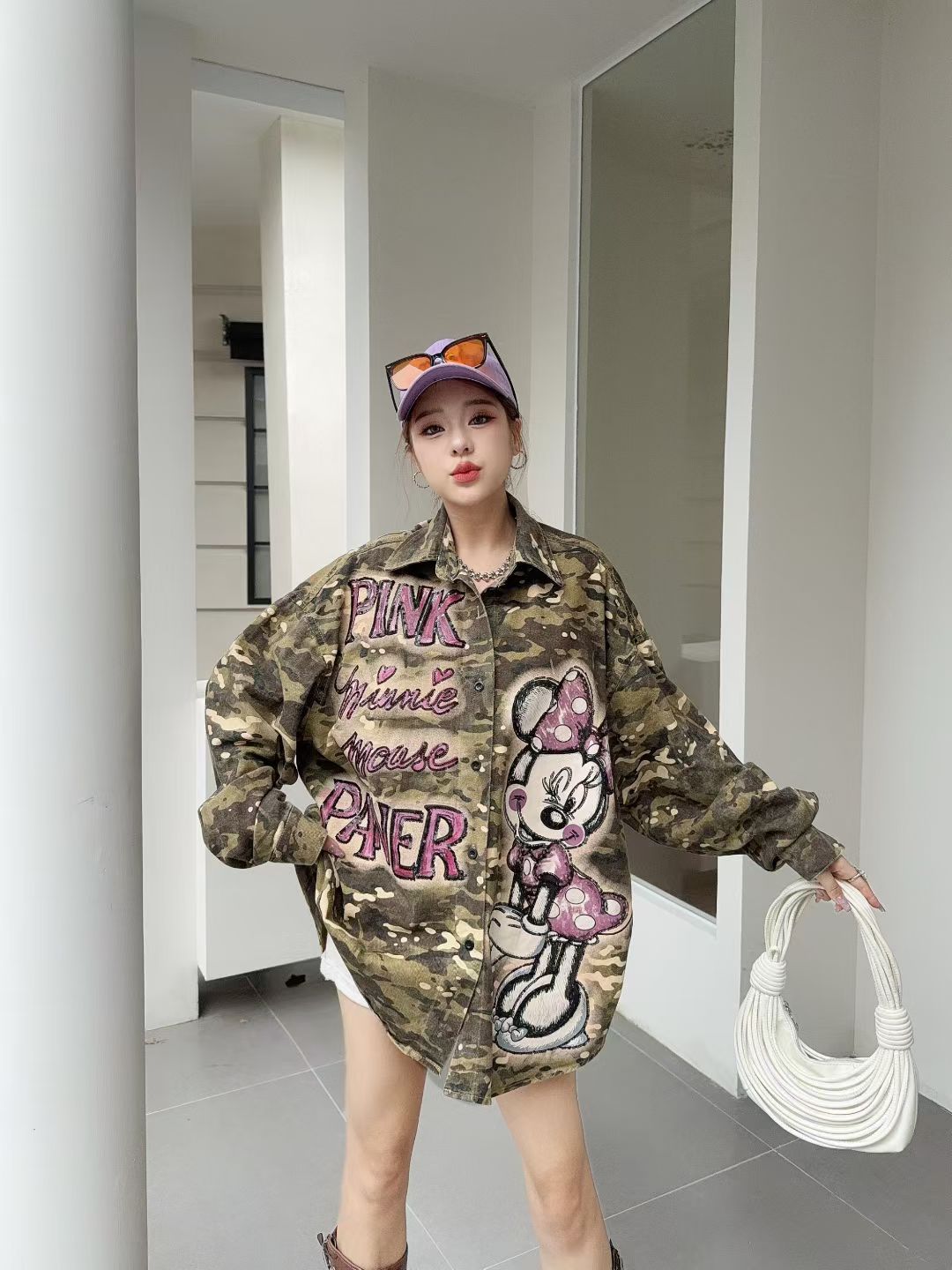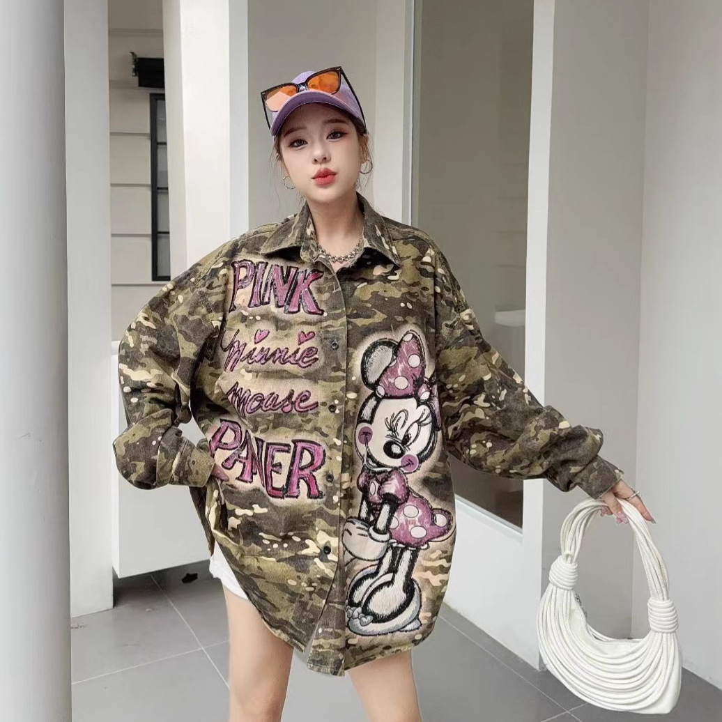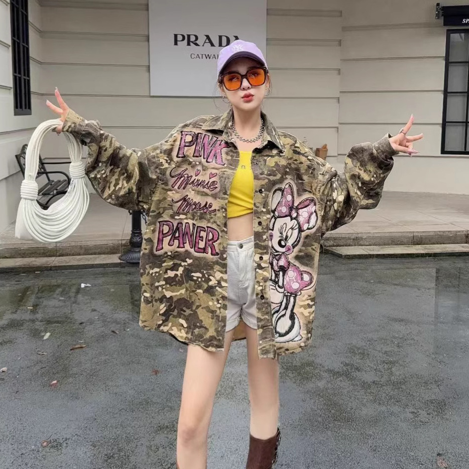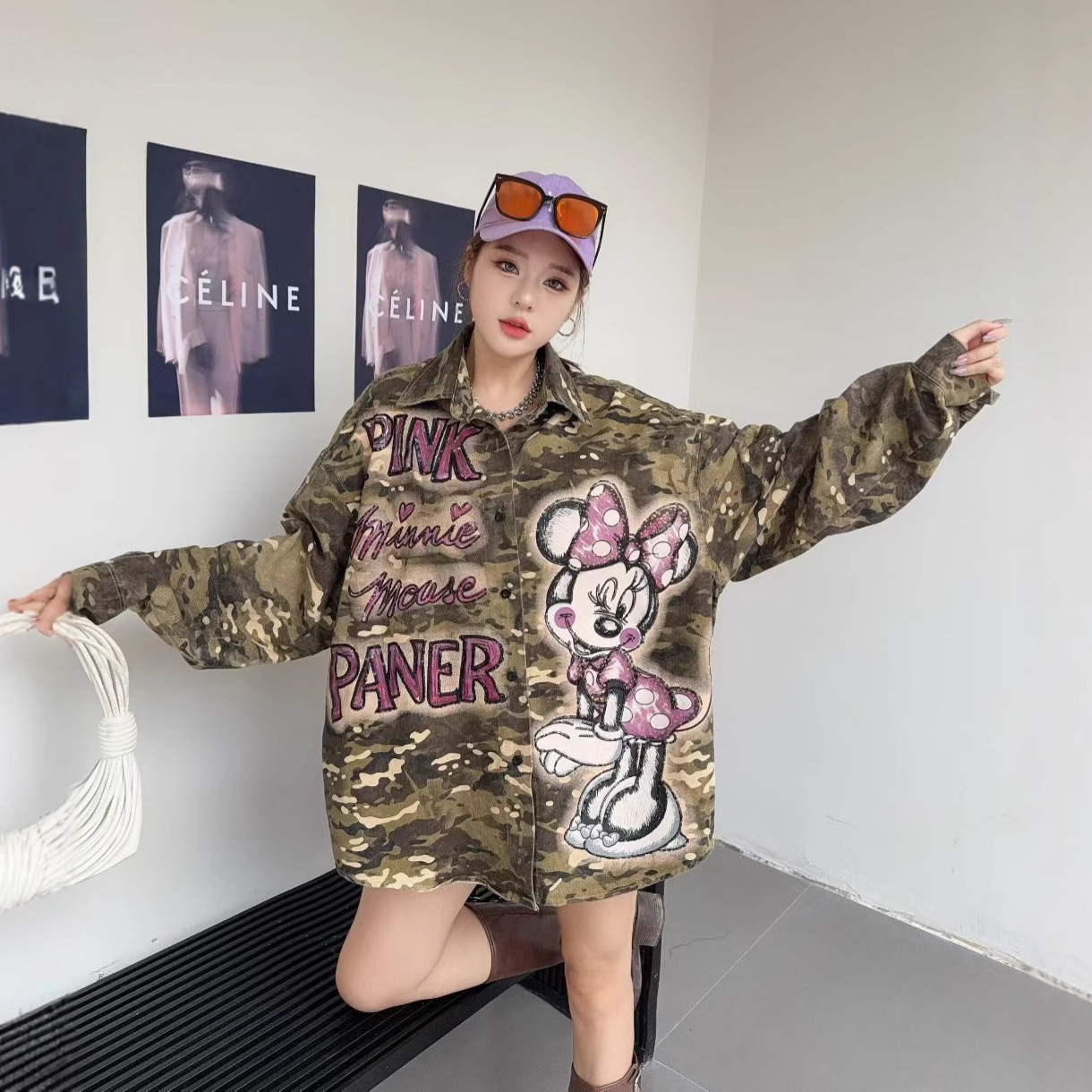 Thailand Chaopai 2025 Autumn New Camouflage Loose Medium length Large Edition Handsome Denim Long Sleeve Shirt Women's Coat
