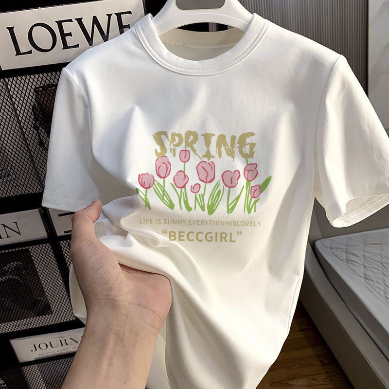 Manufacturer wholesale T-shirt slimming fashion Hong Kong style Instagram trend versatile casual white small fresh printed T-shirt
