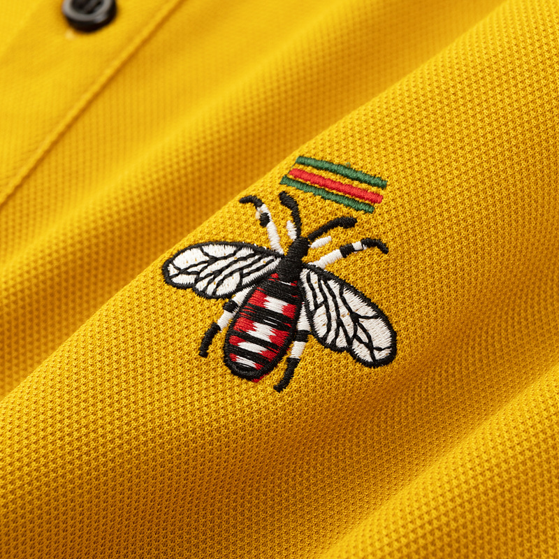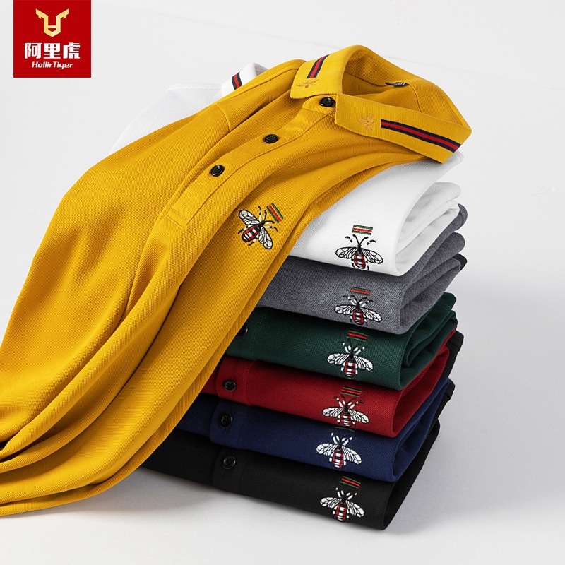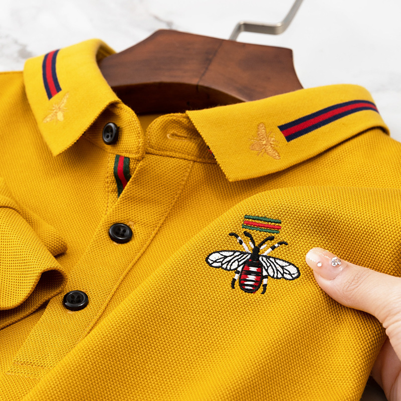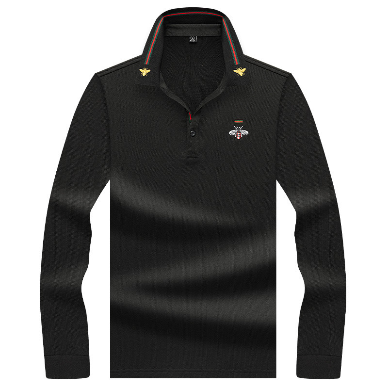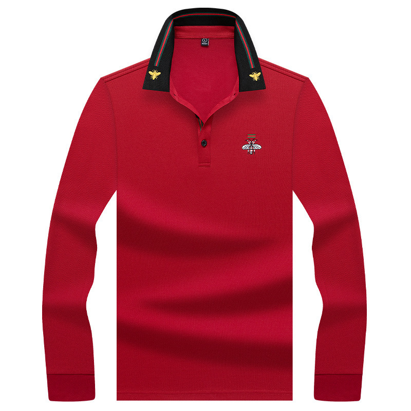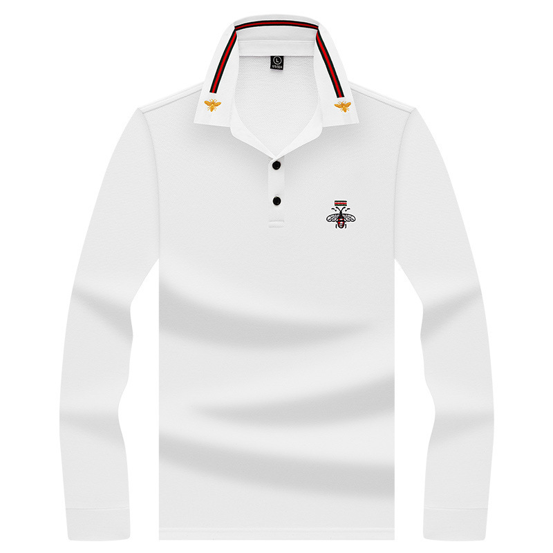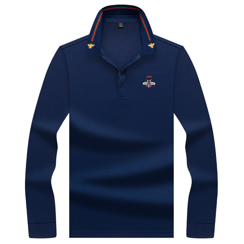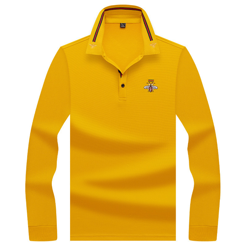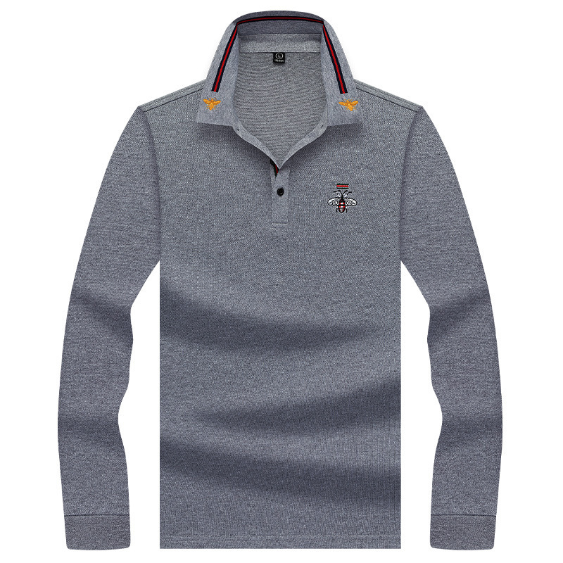 Long sleeved men's T-shirt solid color honey bee embroidery collar breathable dad top casual men's polo shirt light business