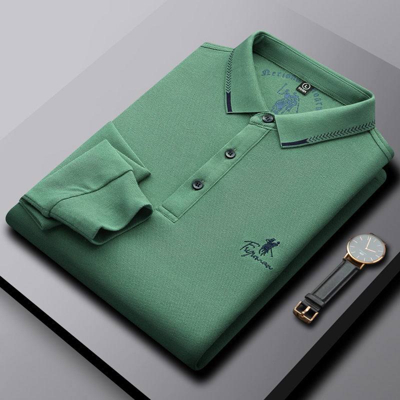 Spot special clearance season long sleeved lapel T-shirt for men, comfortable base shirt, embroidered casual fashion men's polo shirt