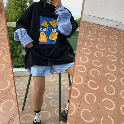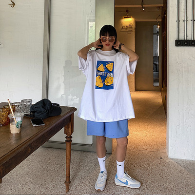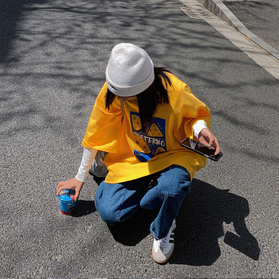 Short sleeved T-shirt for women, loose Korean version Instagram trend, 2022 summer cartoon print, loose and slimming versatile half sleeved top for women