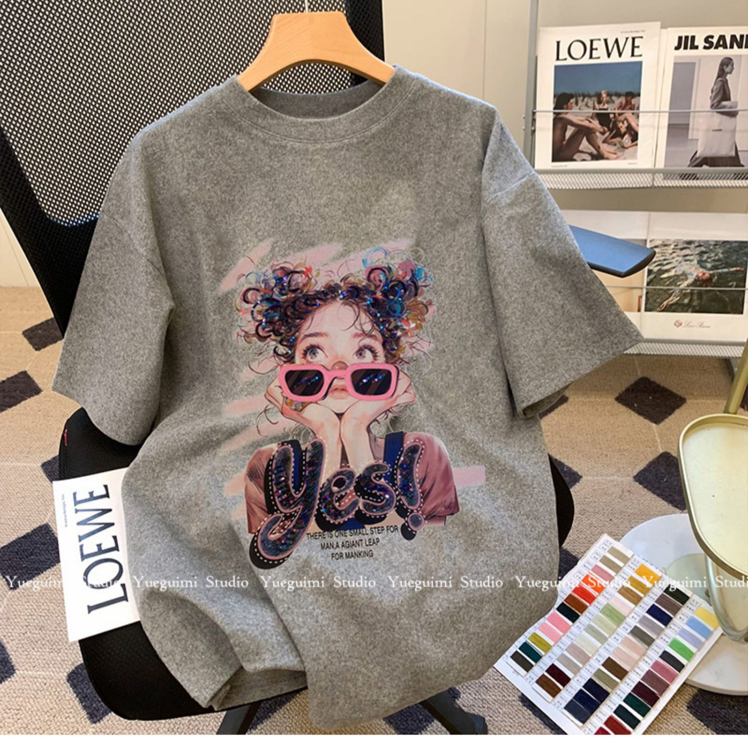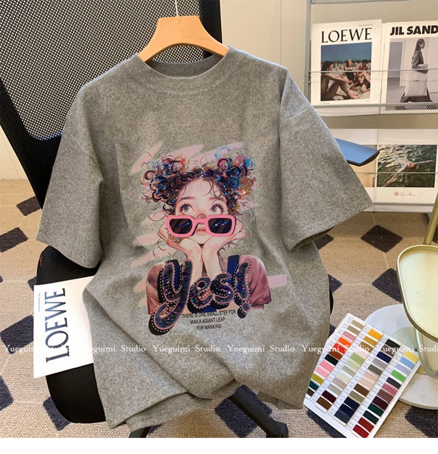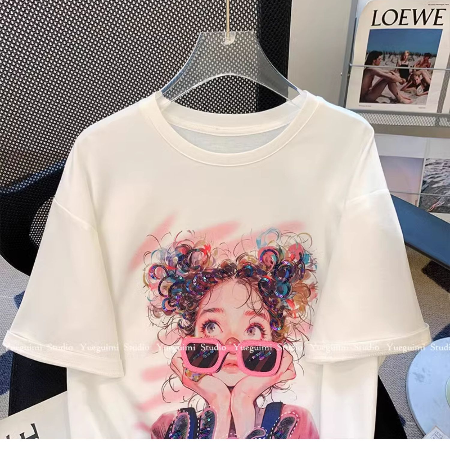 White Fun Girl Short sleeved T-shirt Women's Summer European Large Edition Western Style Loose Casual T-shirt Top Clothes Ins Trendy