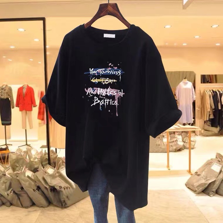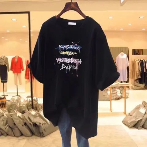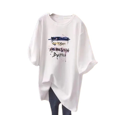 2023 European Large Edition Summer White Short sleeved T-shirt for Women, Loose and Versatile, Student Medium to Long Length Outerwear Top, Ins Trend