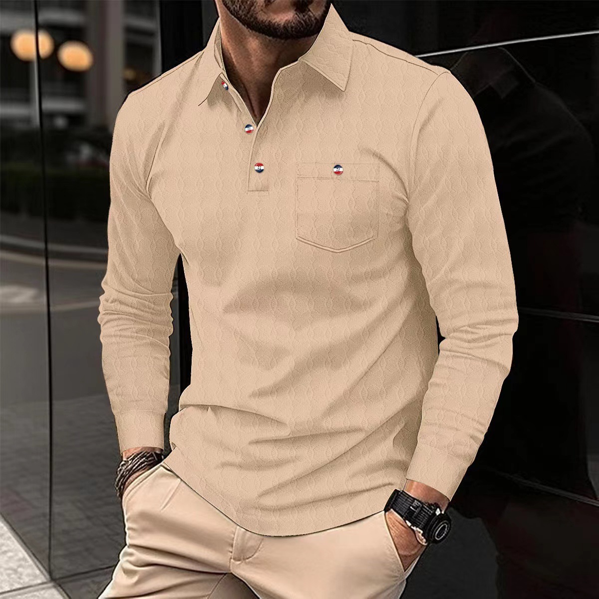 2023 Cross border AliExpress Amazon Autumn/Winter Men's Pocket Jacquard Stand up Collar Polo Shirt Long Sleeve Casual Clothes with Inlaid Flowers