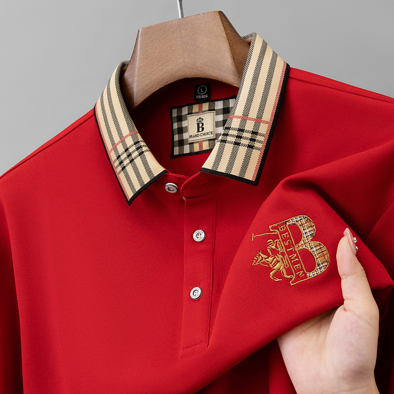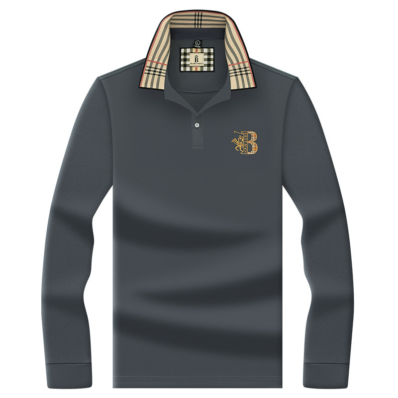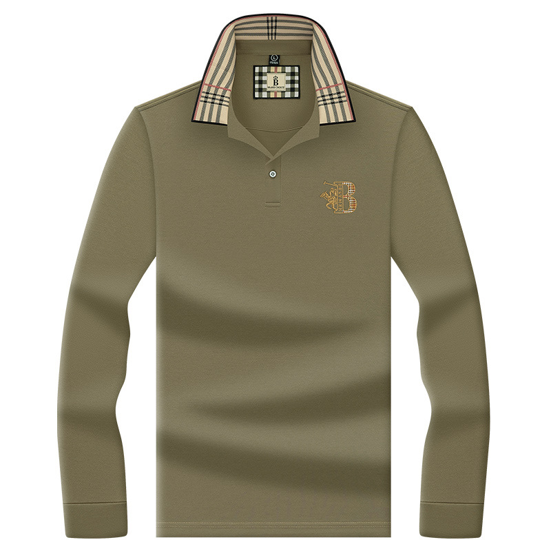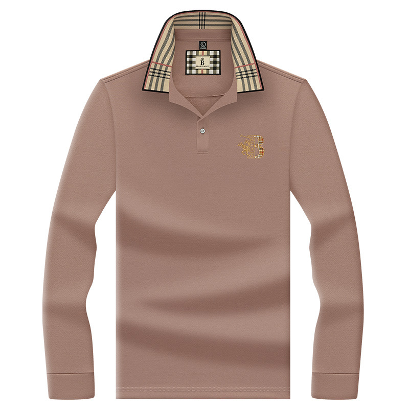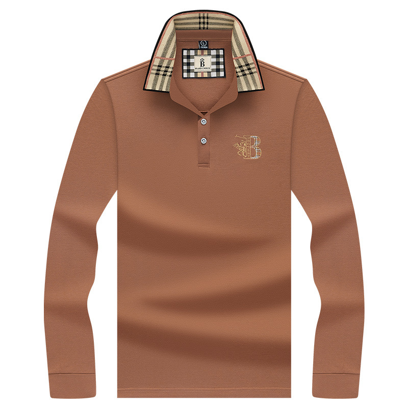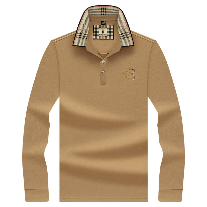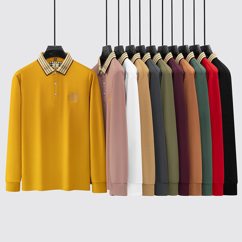 Spring and Autumn Long sleeved T-shirt Men's Casual Collar Paul Middle aged Men's Long sleeved T-shirt Brand Polo Shirt Embroidered Men