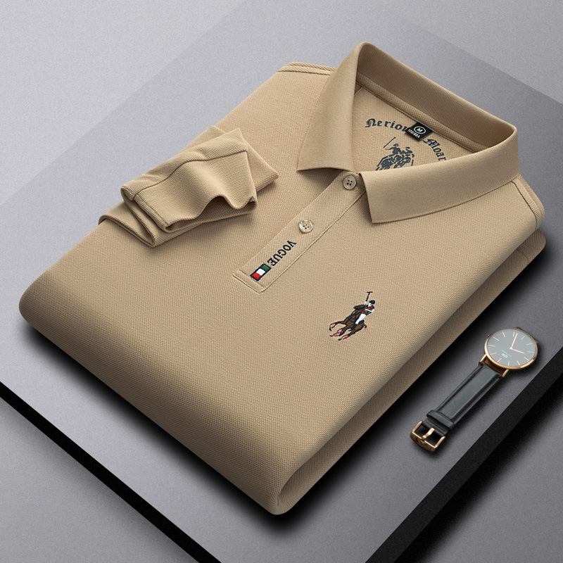 Cotton polo shirt for men, spring and autumn brand, men's cotton t-shirt, long sleeved men's t-shirt, new style, high-end polo shirt with body and blood