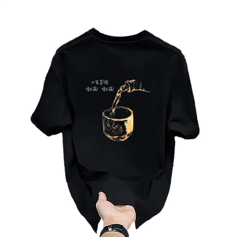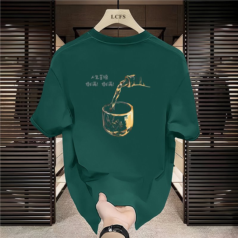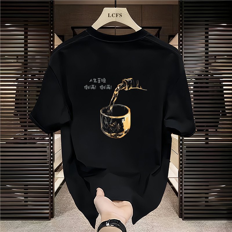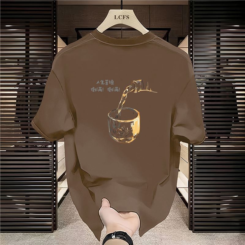 Cross border 2025 Summer Men's Short sleeved T-shirt High end Trendy Brand Printed Top Clothes Fashionable and Casual Interior Matching Bottom Shirt Trendy