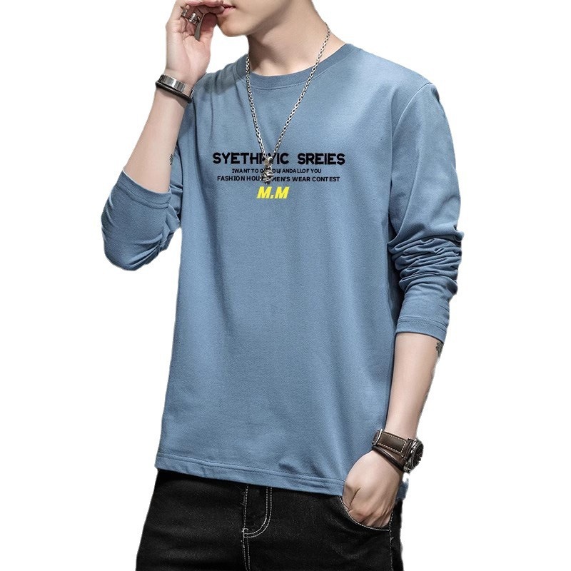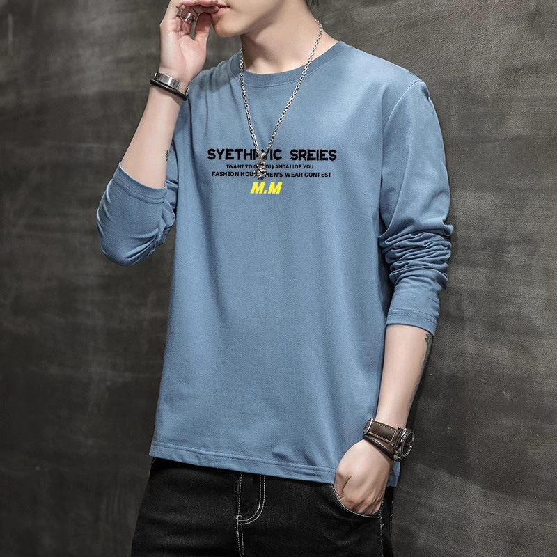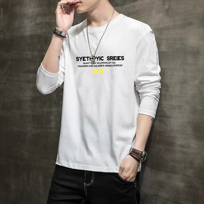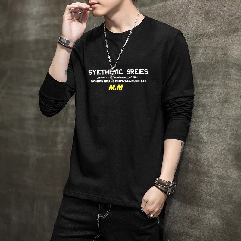 Autumn new men's long sleeved T-shirt trend versatile T-shirt slim fit round neck autumn bottom shirt men's T-shirt trend