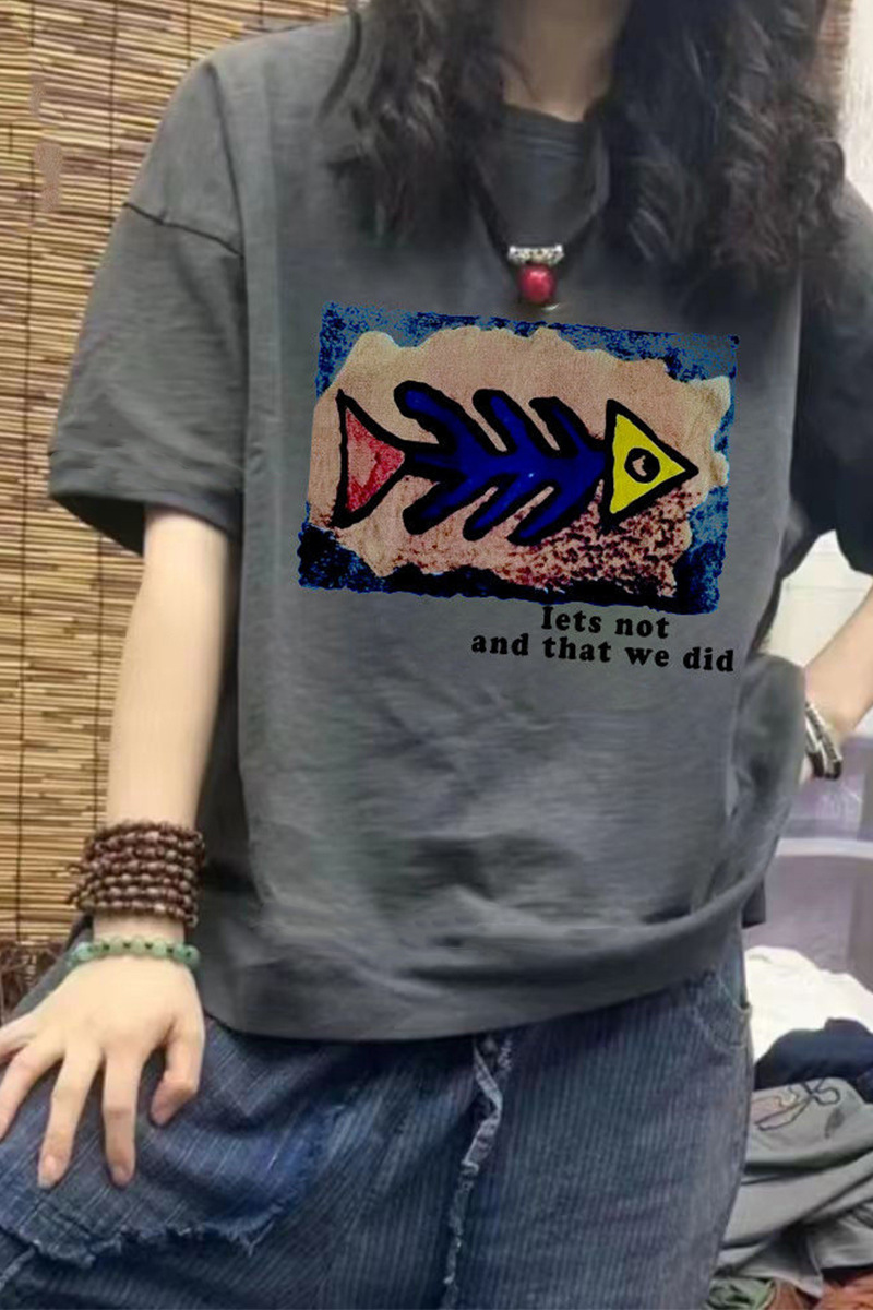 2023 Artistic Printed Simple Cartoon T-shirt for Women's Short Sleeves, Summer New Style, Versatile, Loose and Slimming, Ins Trendy Clothes