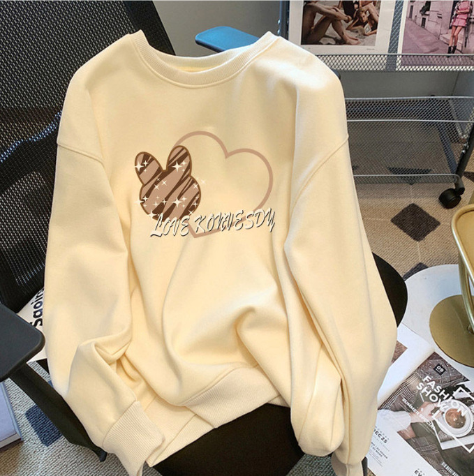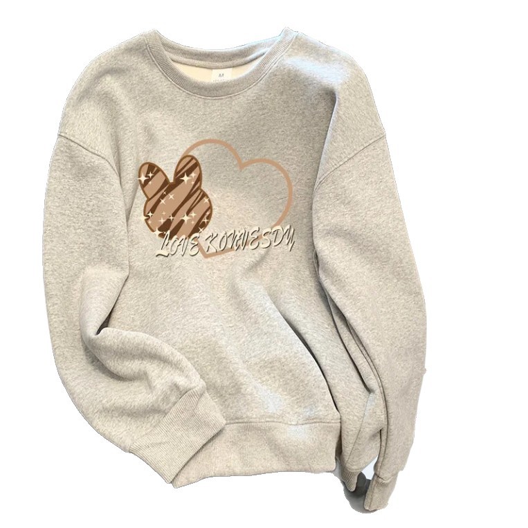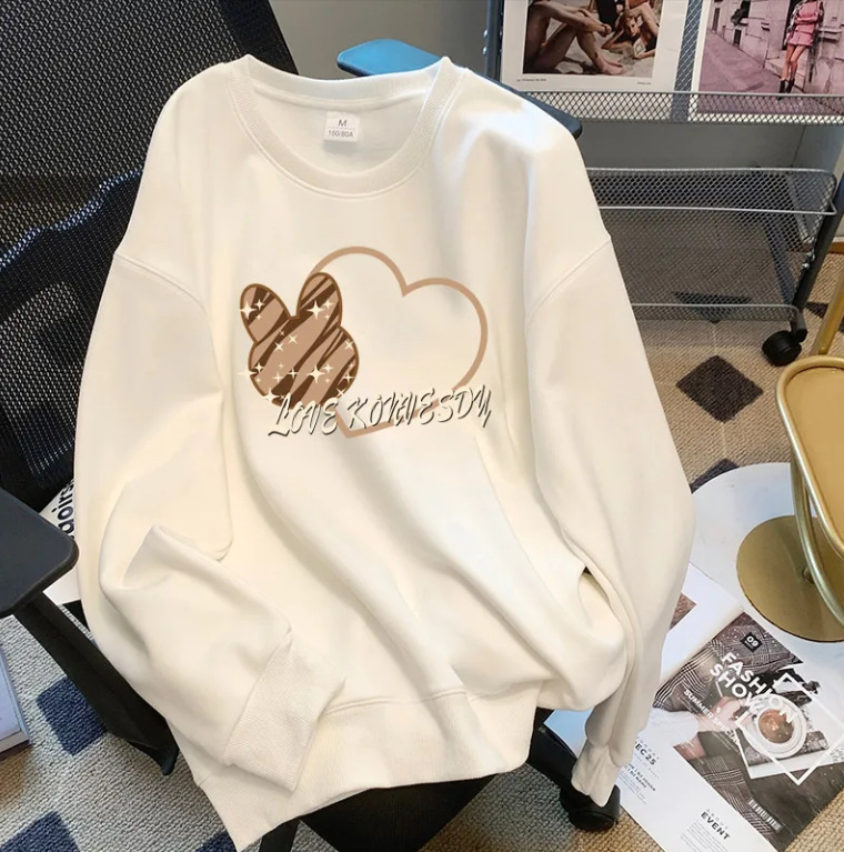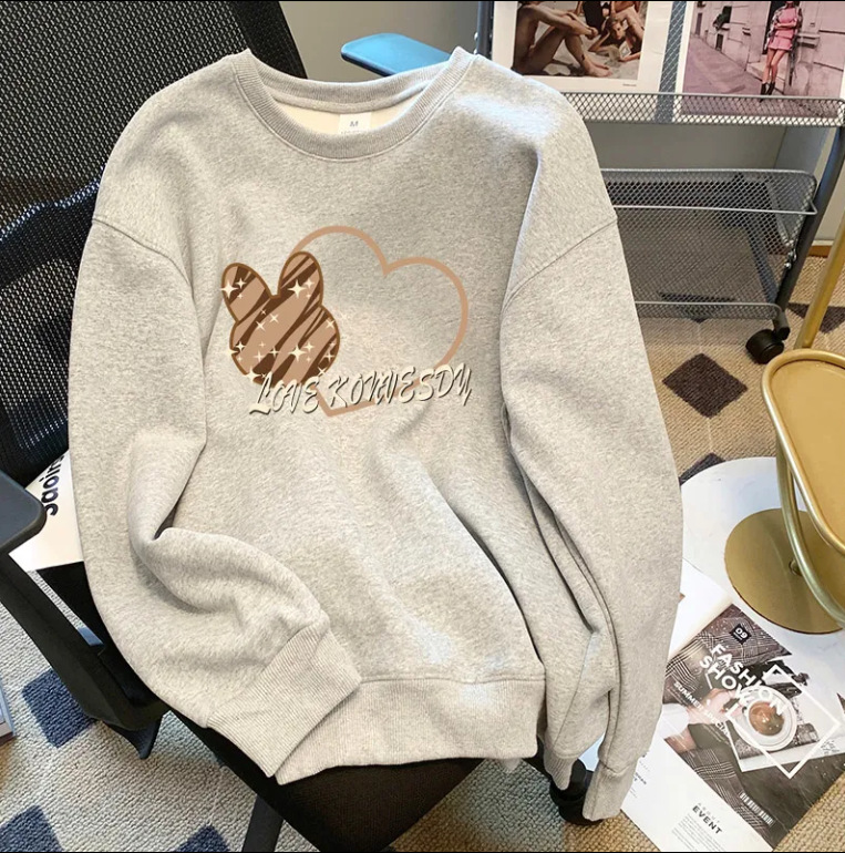 Round neck hoodie for women in Spring and Autumn 2025, new cartoon lazy style pullover, versatile loose long sleeved top, trendy Instagram outfit