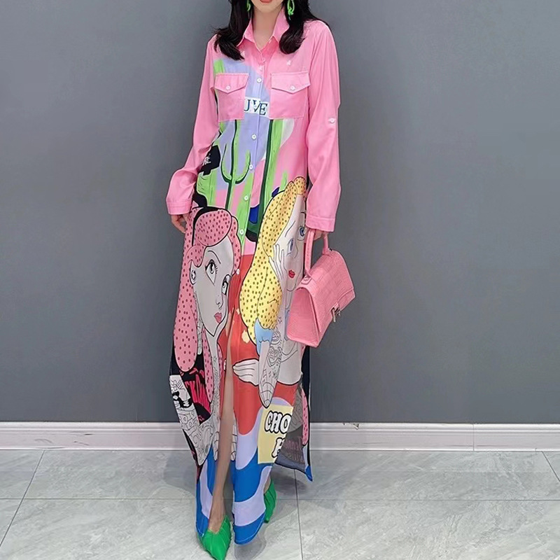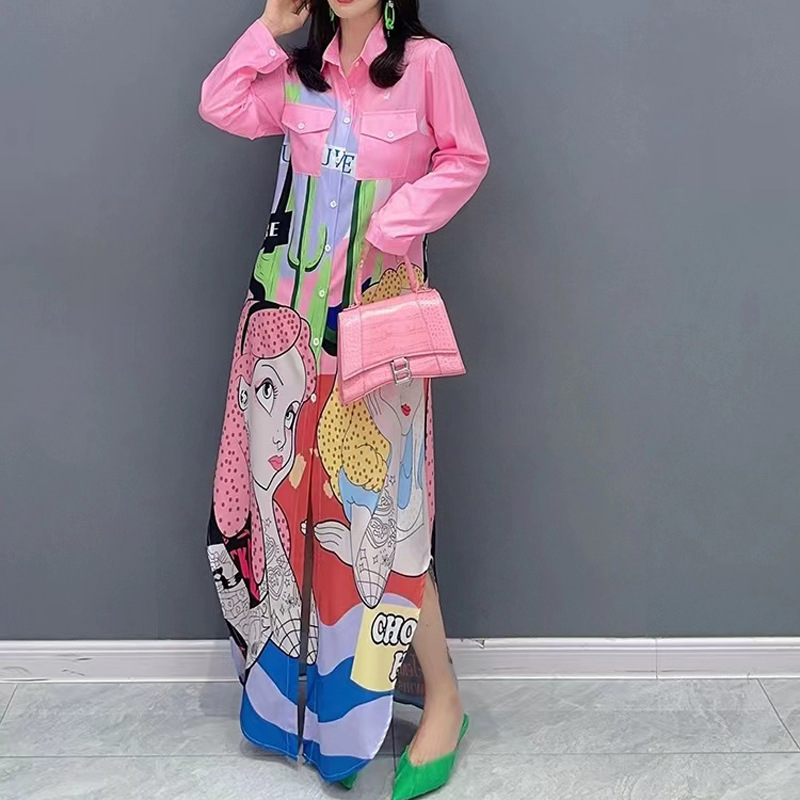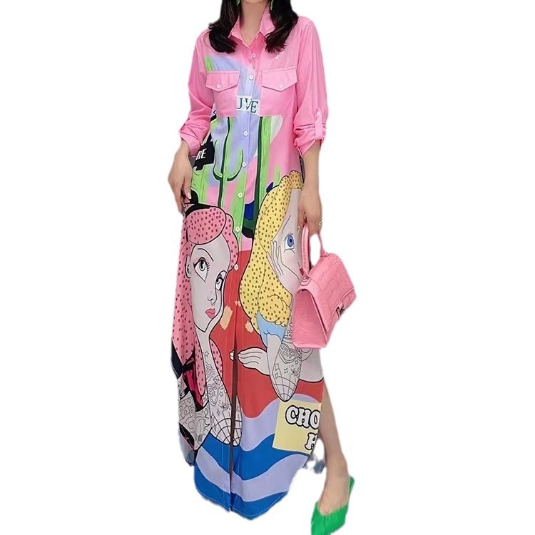 Thailand Chaopai 2024 spring summer new Korean style temperament POLO collar printed shirt dress Western thin women's dress