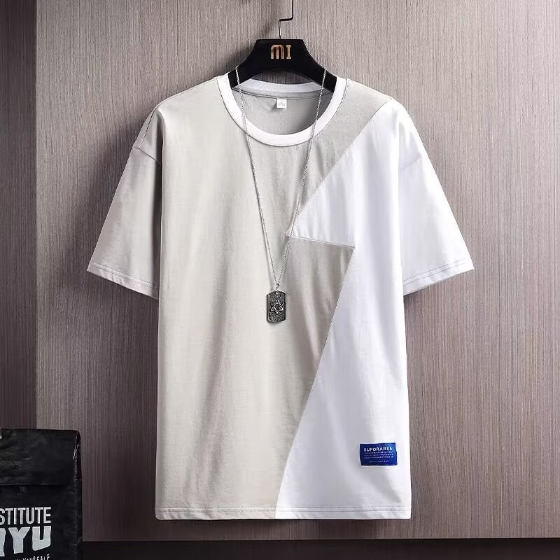 Clothing color blocking splicing short sleeved T-shirt for men's summer new style, loose, fashionable, trendy, casual five quarter sleeve top