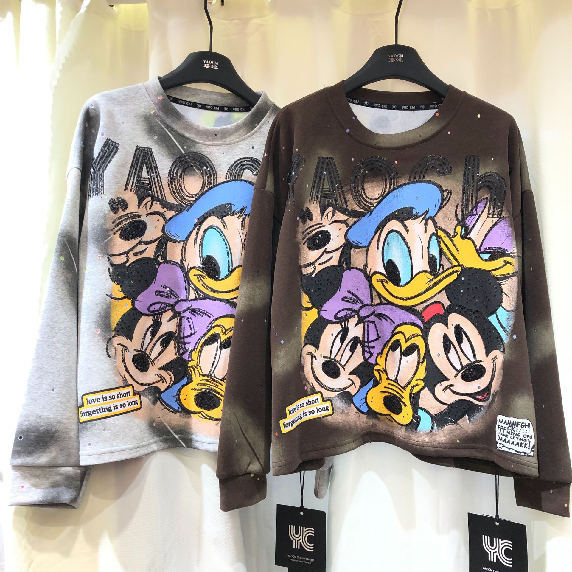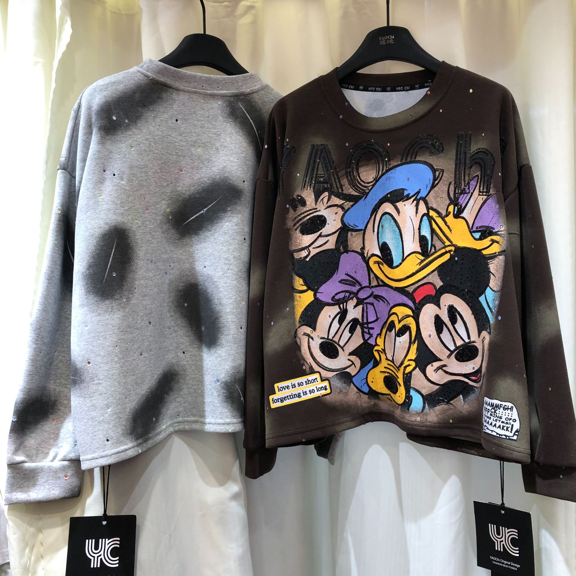 European cartoon heavy-duty printed long sleeved hoodie for women in autumn and winter, fashionable and casual versatile top trend
