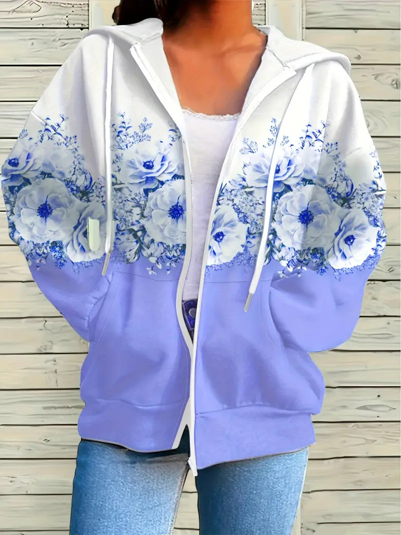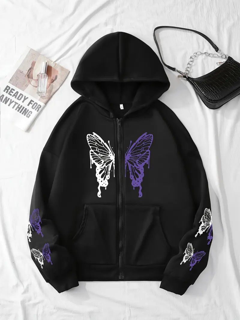 Cross border new men's and women's zipper hoodie spider retro pattern printed zipper top sweatshirt sweatshirt