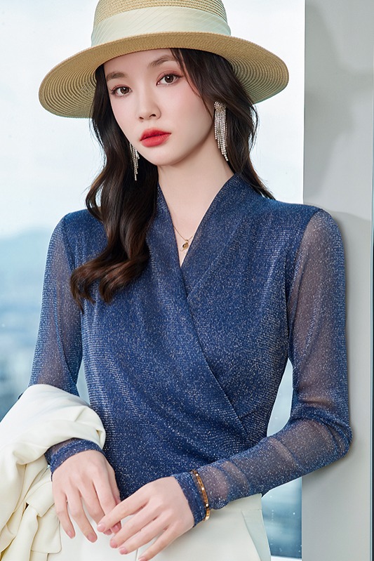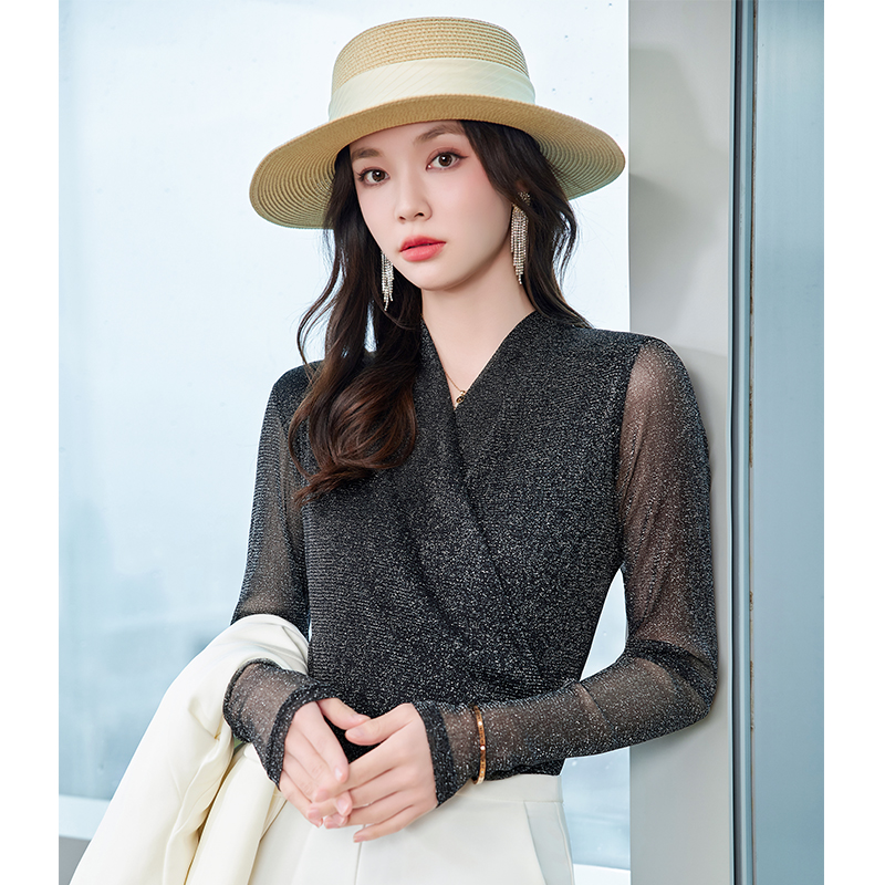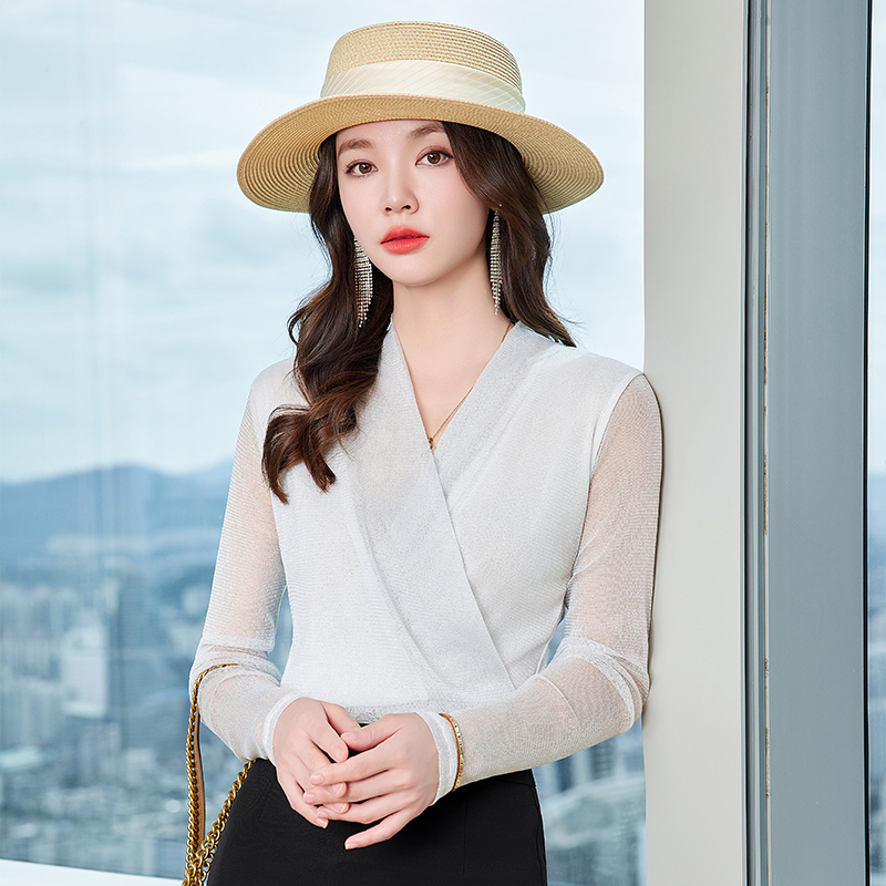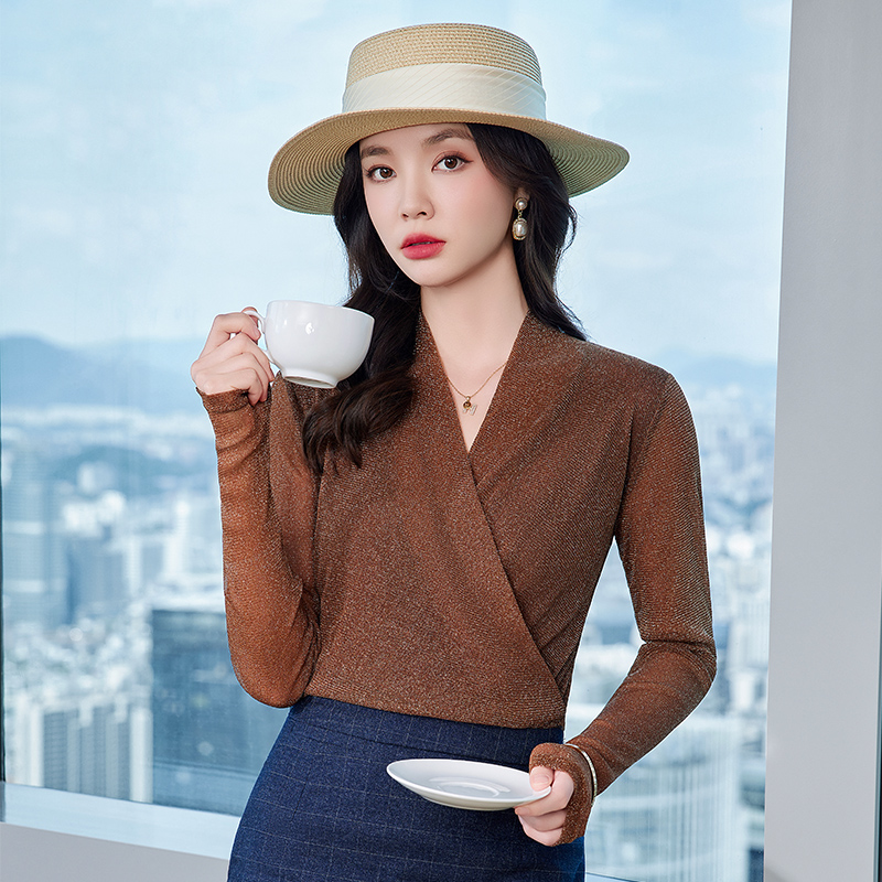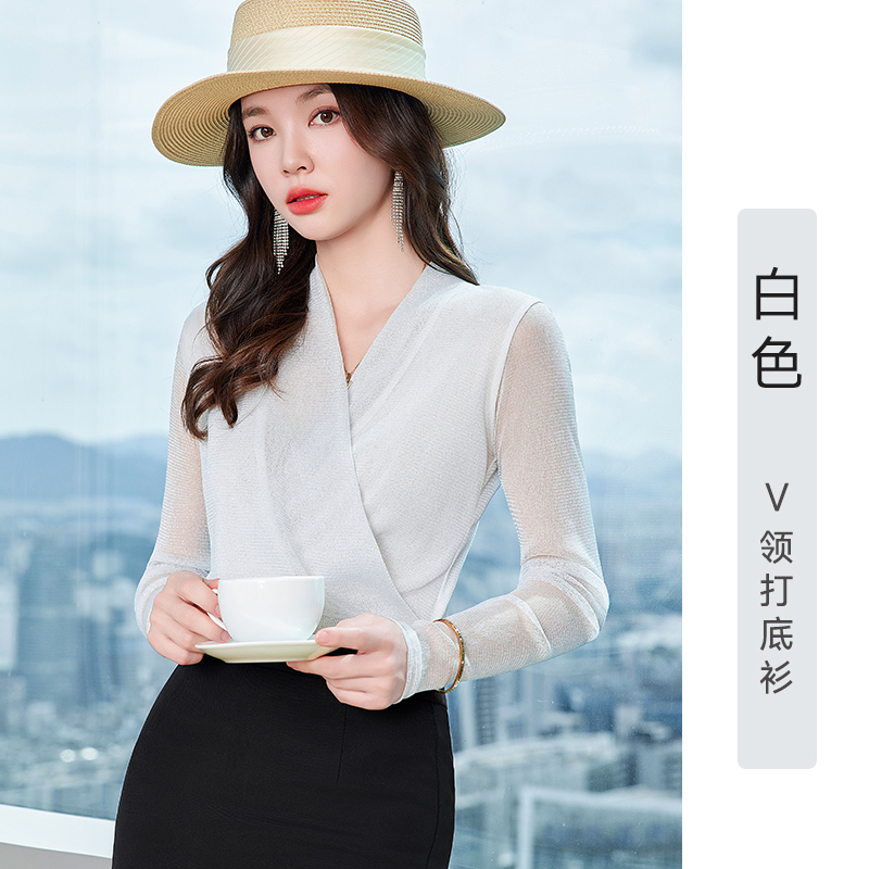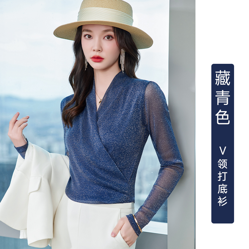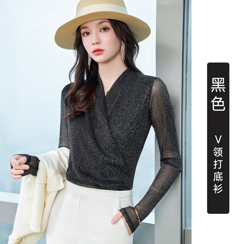 Design sense, niche temperament, V-neck T-shirt for women in early autumn 2025, new fashionable and stylish casual versatile commuting base shirt