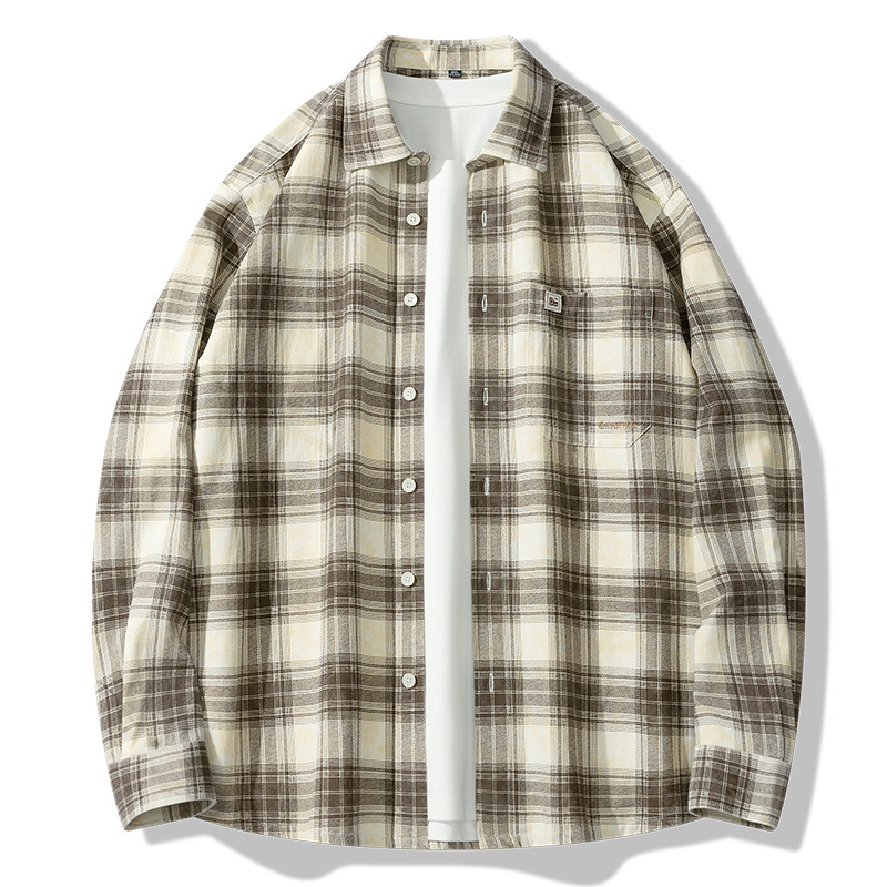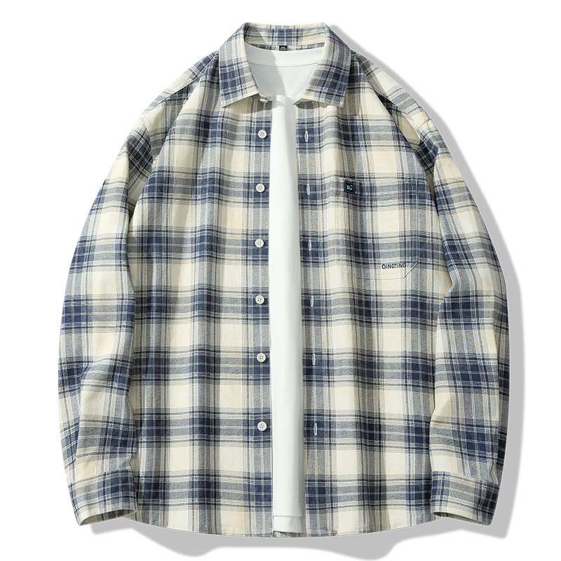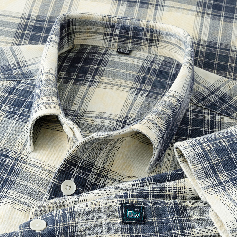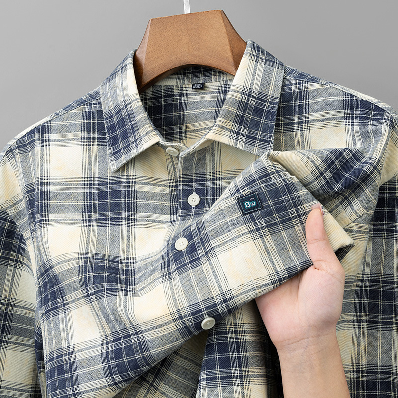 Spring and Autumn Men's Long Sleeve Warm Shirt Business Casual Checkered Striped Shirt Non Ironing Wrinkle Resistant Cotton Thin Coat