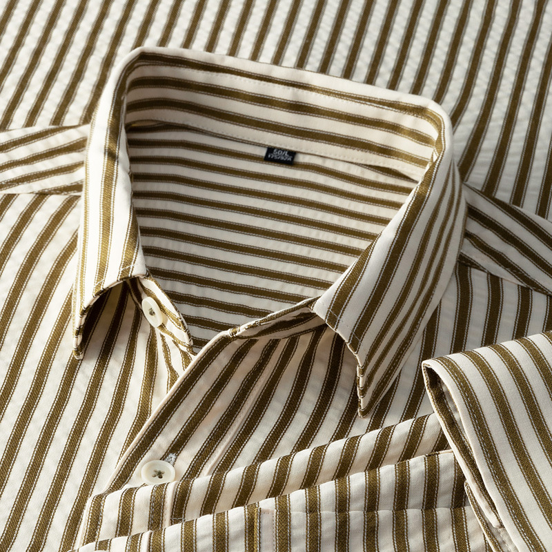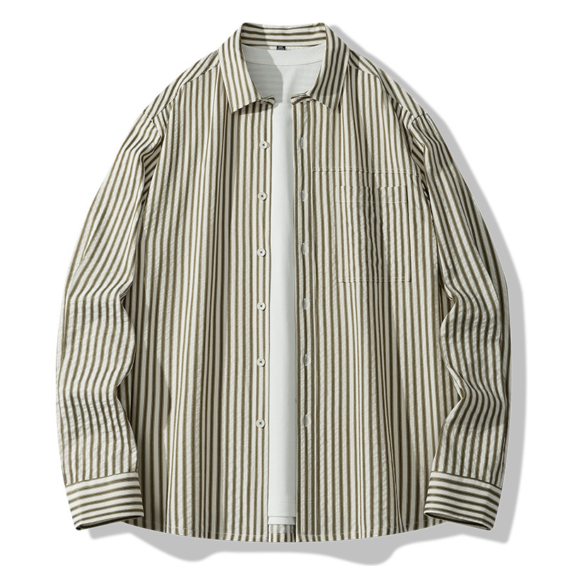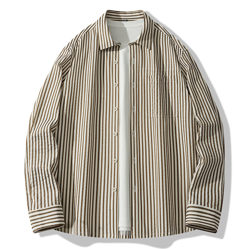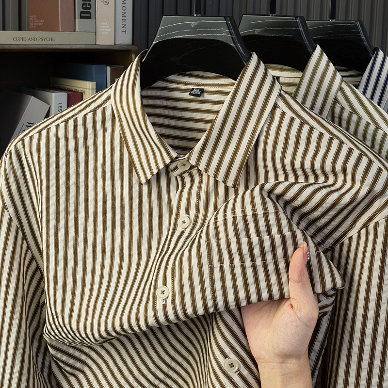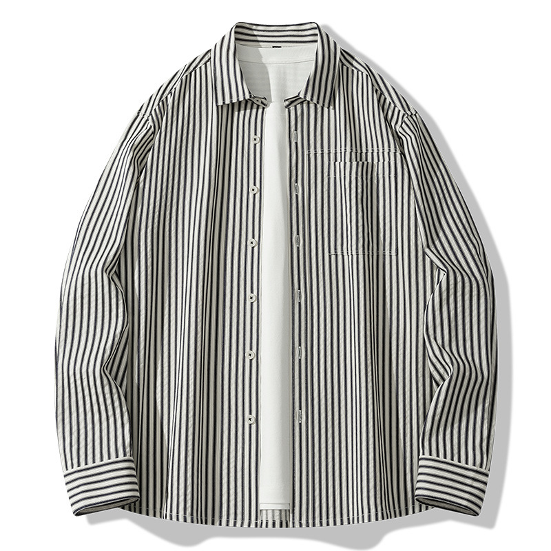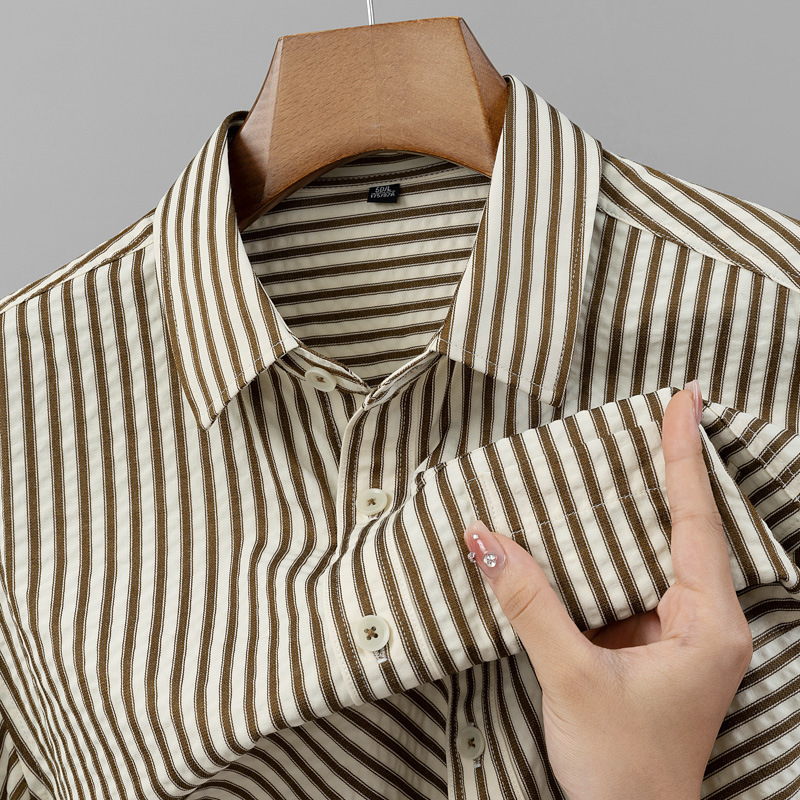 Alibaba Tiger Men's New Striped Pocket Decoration Simple and Comfortable Business Long Sleeve Shirt Versatile for Middle aged and Young Men