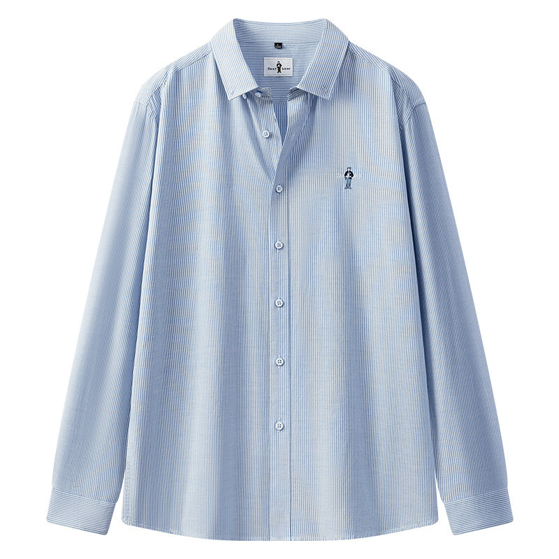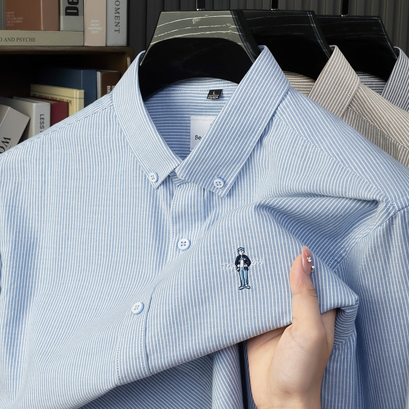 Fashionable vertical striped spring and autumn versatile business high-end figure embroidery long sleeved shirt trendy all cotton shirt for men