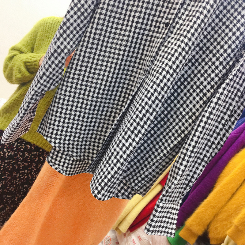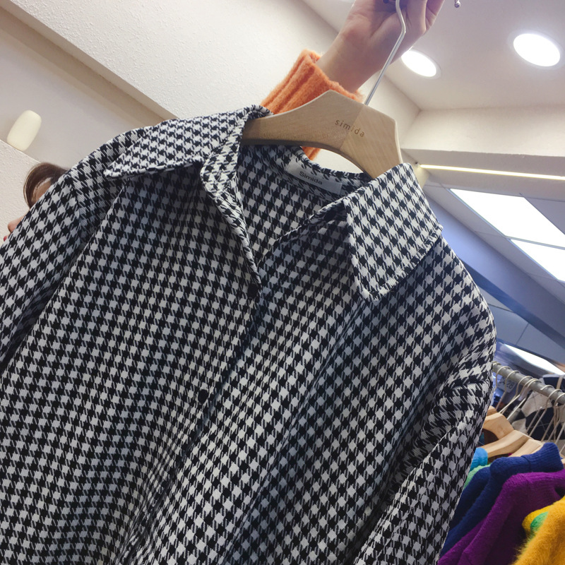 New Simida plaid lapel long sleeved casual cardigan shirt for women in Dongdaemun, South Korea