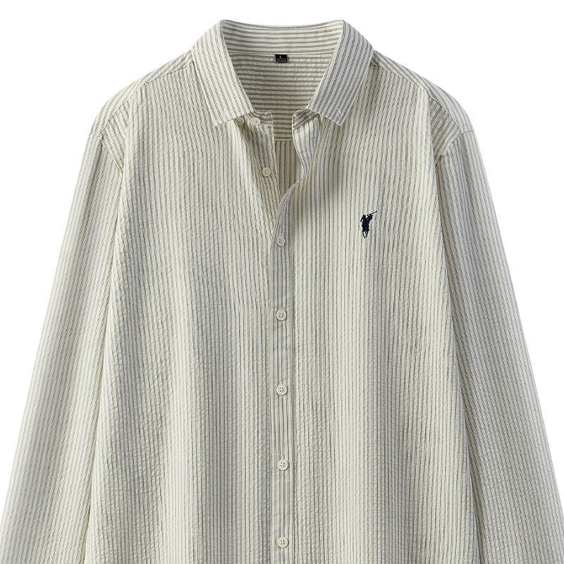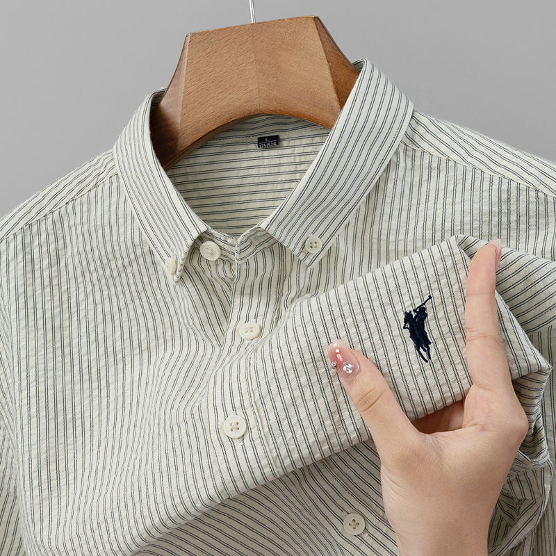 Alibaba Tiger Men's Summer 100 Cotton Long Sleeve Striped Shirt New Casual Men's T Embroidered Pony Half Sleeve Shirt