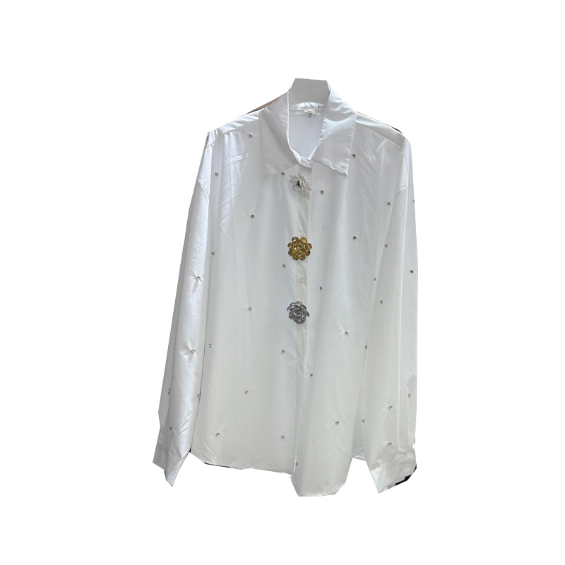 Thirteen line French style niche rhinestone asymmetrical collar, lapel, bubble sleeves, long sleeves, floral single breasted shirt A1 # 863