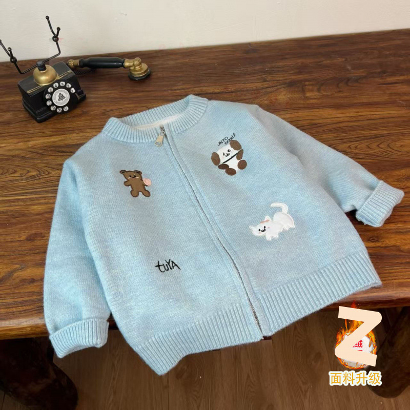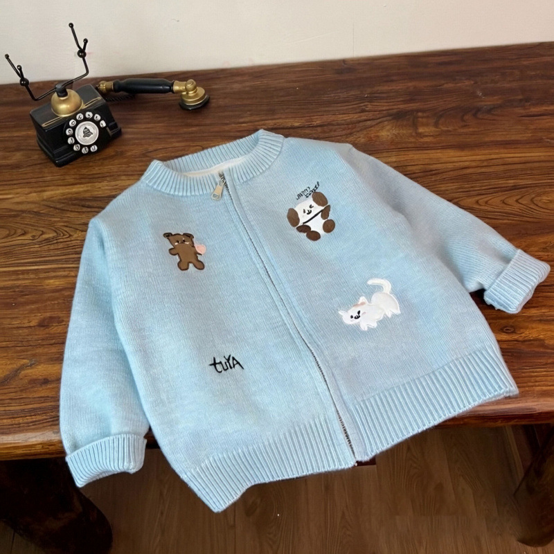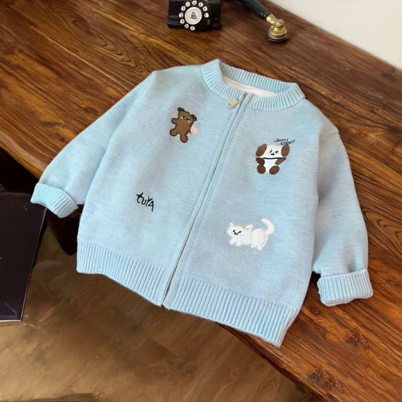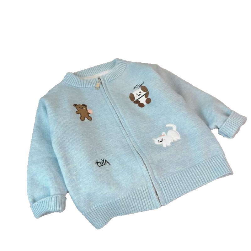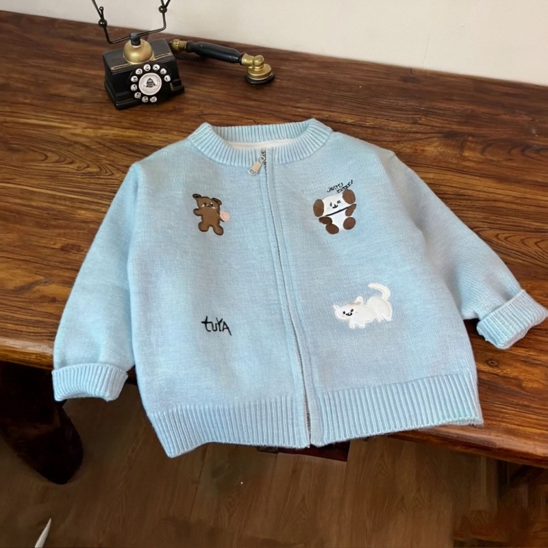 2025 Boys' and Girls' Autumn Children's Knitted Cardigan Coat Korean Edition Western Style Cute Heavy Industry Embroidery Zipper Sweater