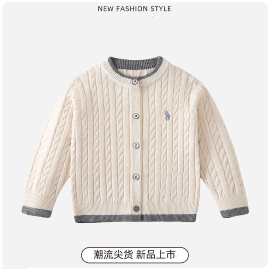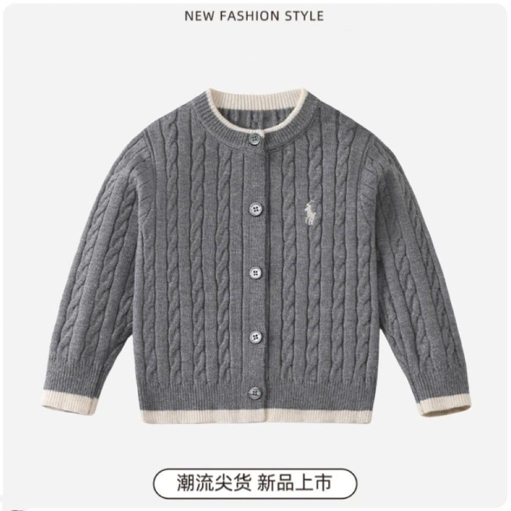 Boys' sweaters, cardigans, spring and autumn styles, 2025 hot items, children's knitwear, Korean version, boys' jackets, medium and large children's sweaters
