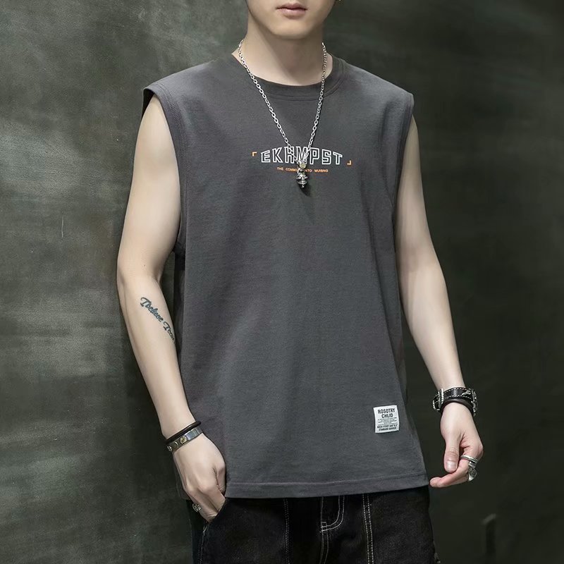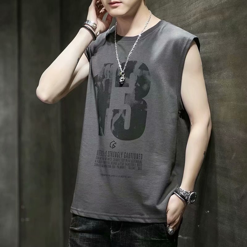 Tank top men's 2022 summer new Korean version sleeveless T-shirt base sport thin loose student vest