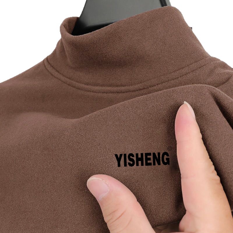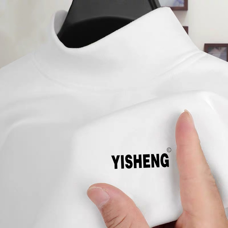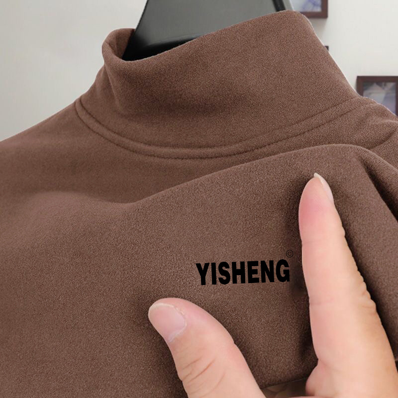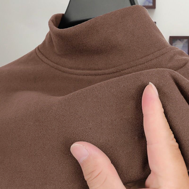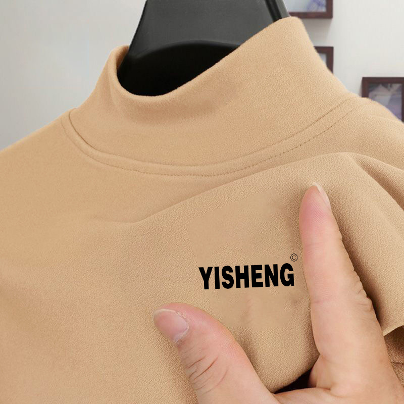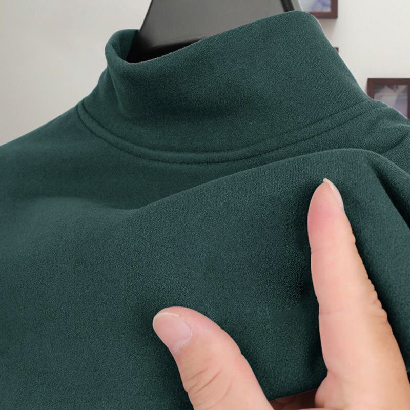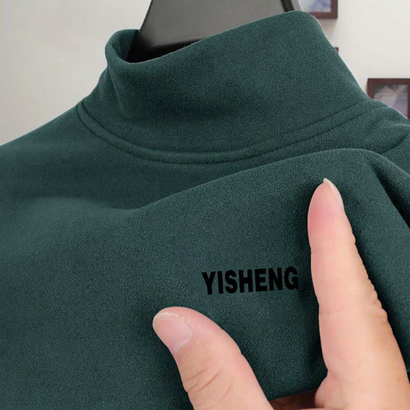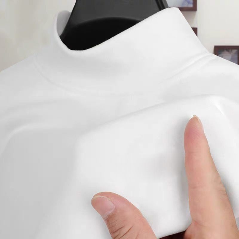 German flannel semi high neck base shirt for men in autumn, paired with a coat, suit base with flannel, mature and stable men's long sleeved t-shirt