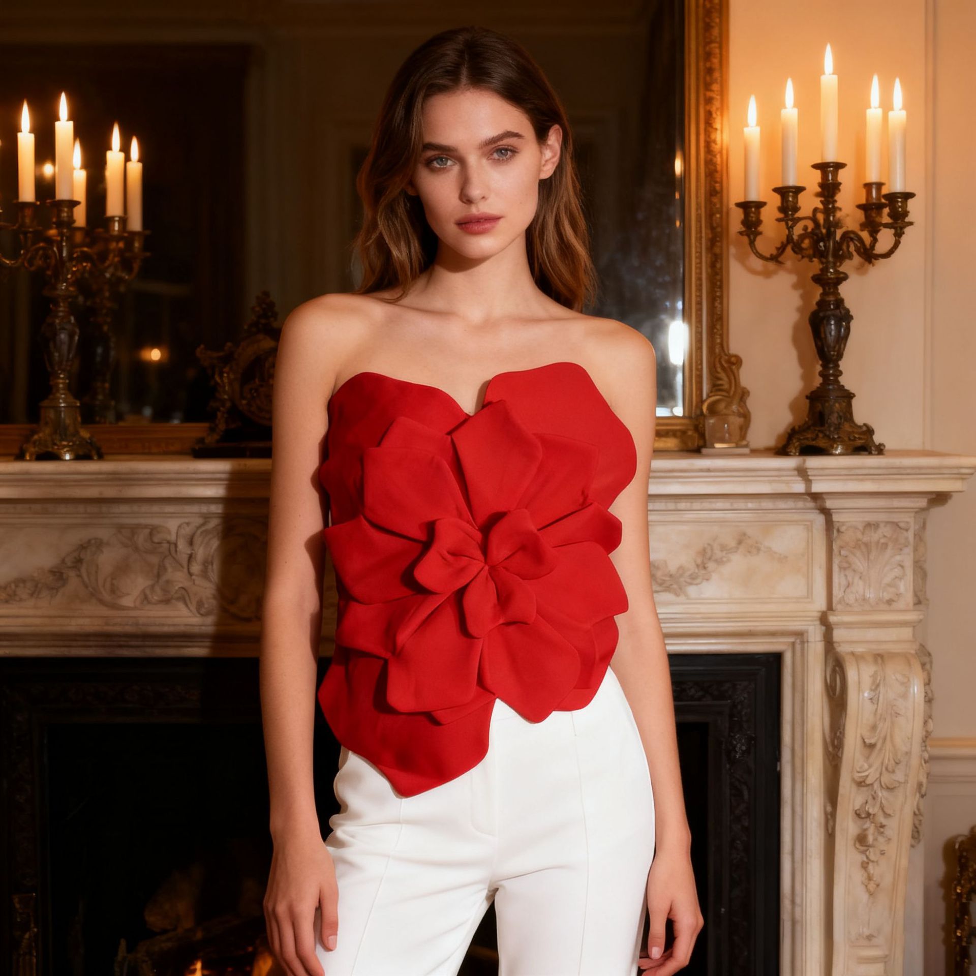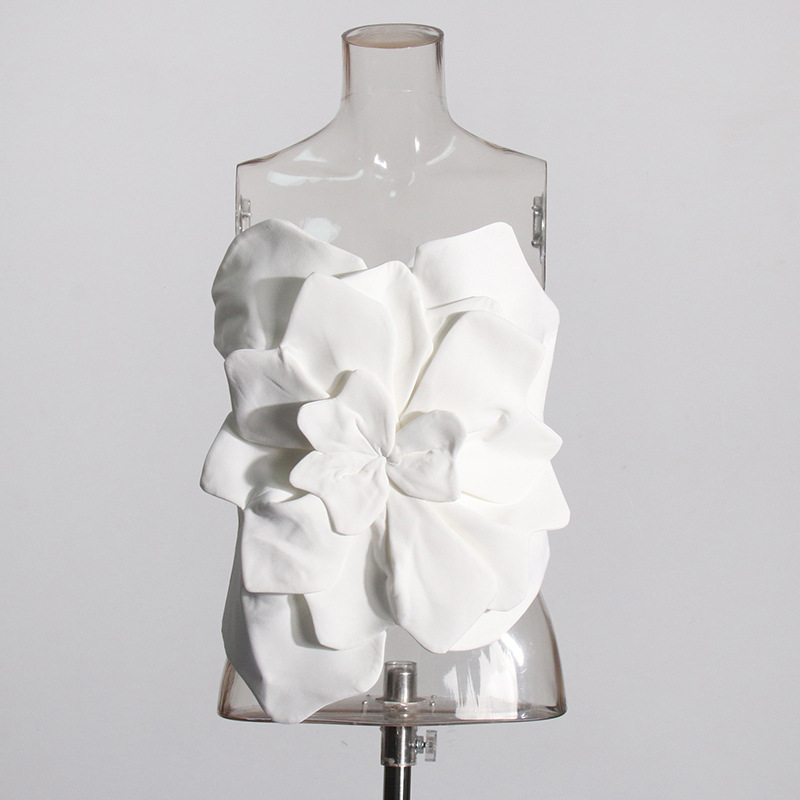Sexy spicy girl fashion trend top 2025 summer new three-dimensional flower design high-end strapless vest for women