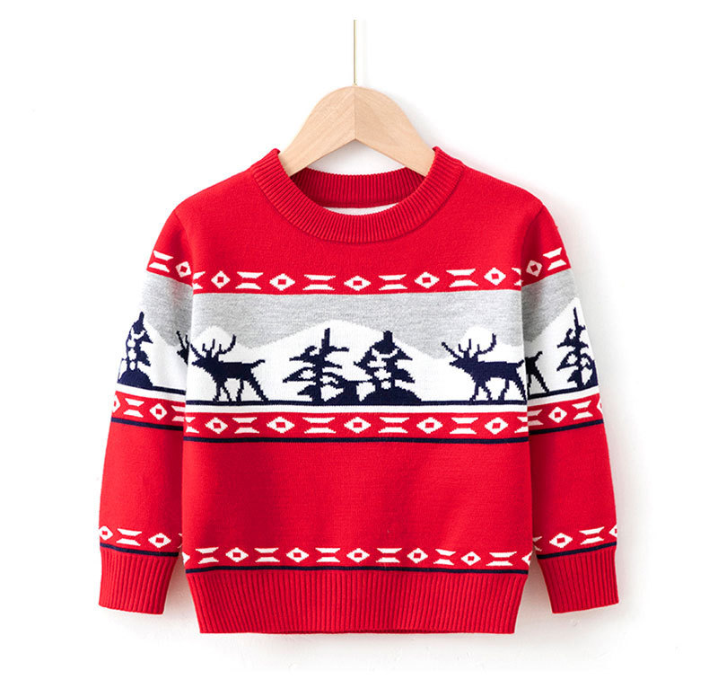 2023 European and American New Children's Christmas Sweater, Children's Clothing, Girls' and Boys' Autumn and Winter Cartoon Hooded Knitted Sweater