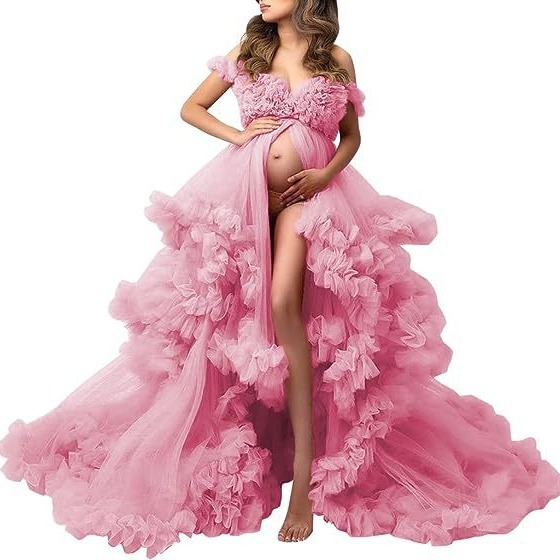 Cross border foreign trade hot selling new pregnant women's mesh dress, photography dress, deep V-perspective photography, photography clothing