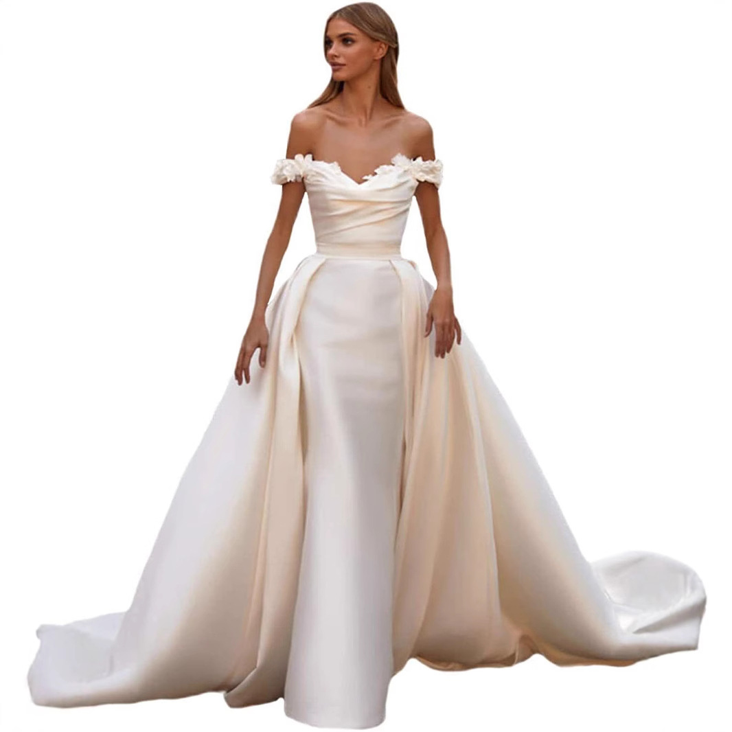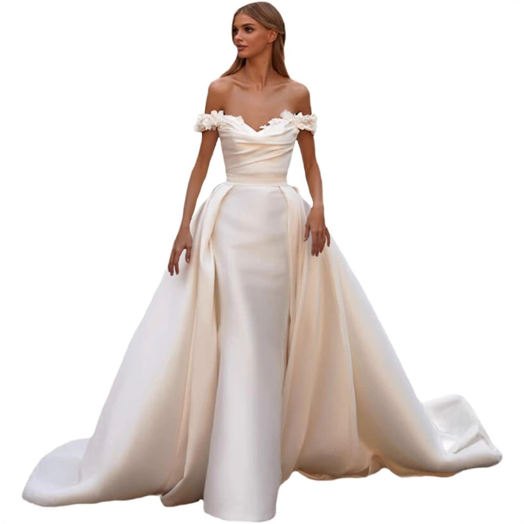European and American cross-border Amazon foreign trade one shoulder satin detachable slim fit fish tail wedding dress new two-piece wedding dress