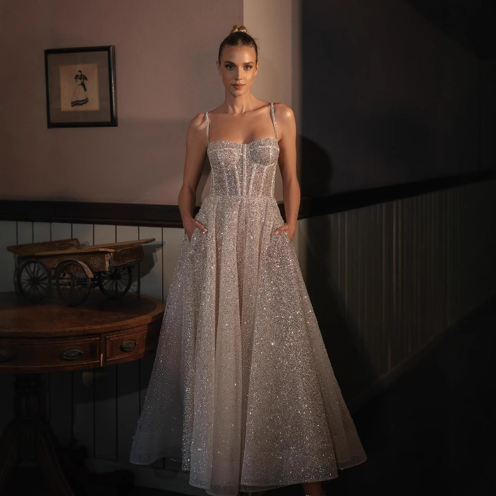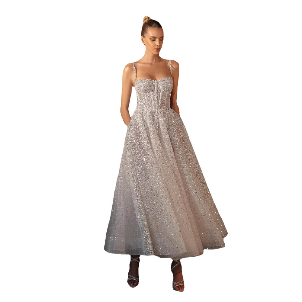 Strap spray silver short wedding dress, canopy dress, cross-border e-commerce supply support, one piece dropshipping European and American style short wedding dress
