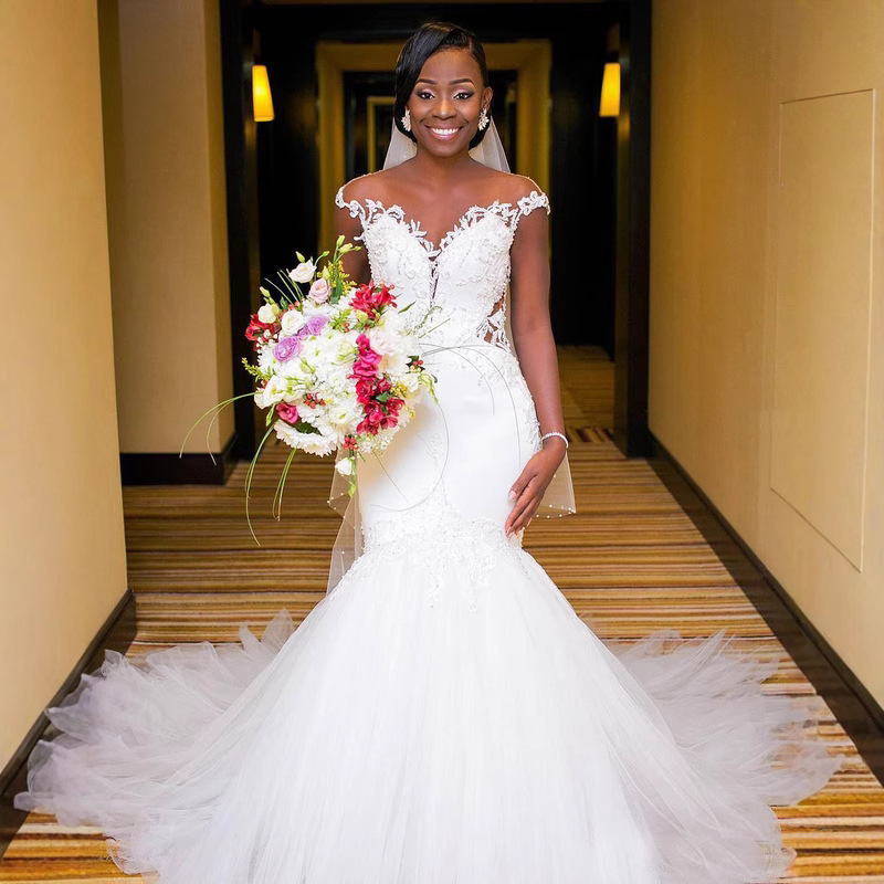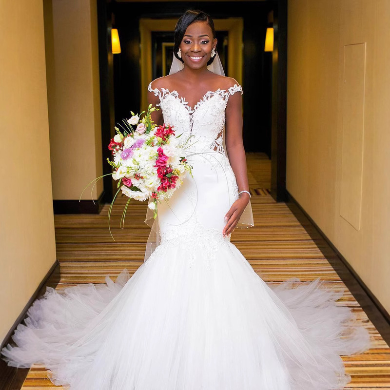 2025 new fish tail light wedding dress temperament, waist cinching, one shoulder slimming, simple European style, forest style, Amazon wedding dress