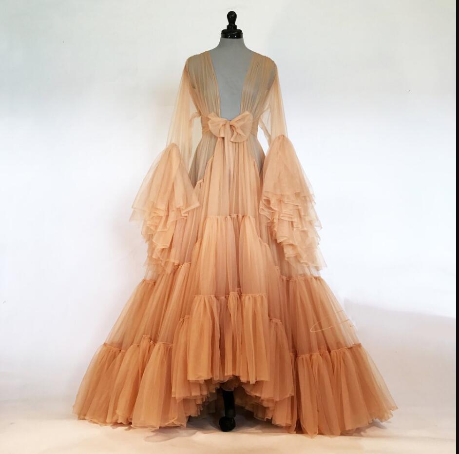 Cross border hot selling mesh morning gown formal women's photo clothing long sleeved gauze skirt draped over European and American Amazon hot