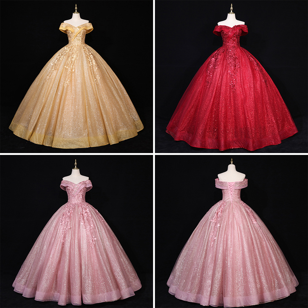 Cross border Wedding Dress 2025 Bridal Solo Art Exam Performance Pong Skirt Palace Dream One Shoulder Evening Banquet Evening Dress