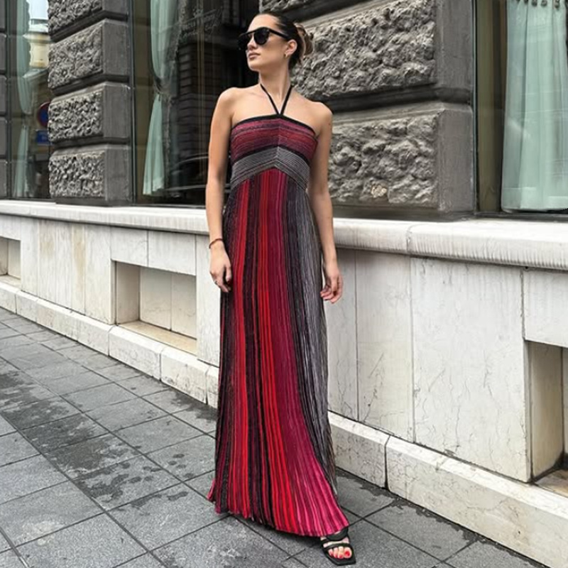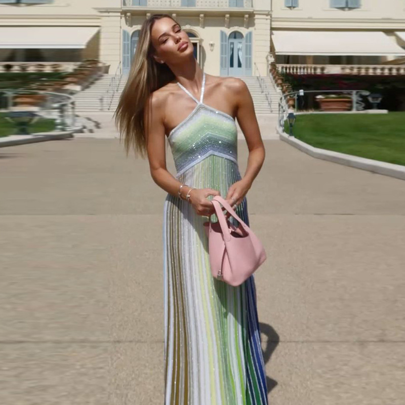 European and American Cross border Vacation Style Long Dress 2025 New Fashionable Hanging Neck, strapless Sleeveless, backless Long Dress for Women Summer