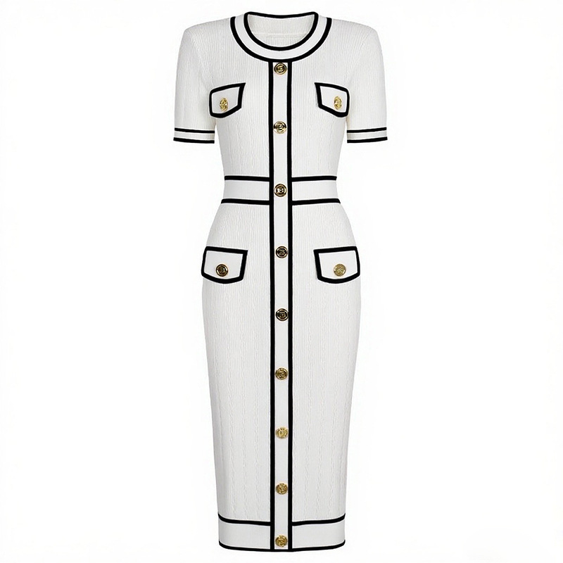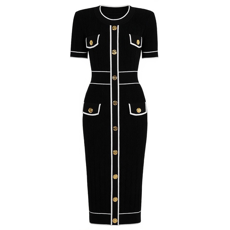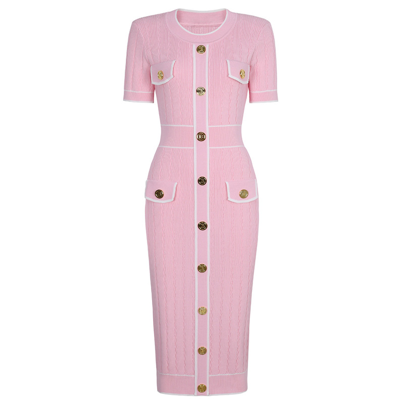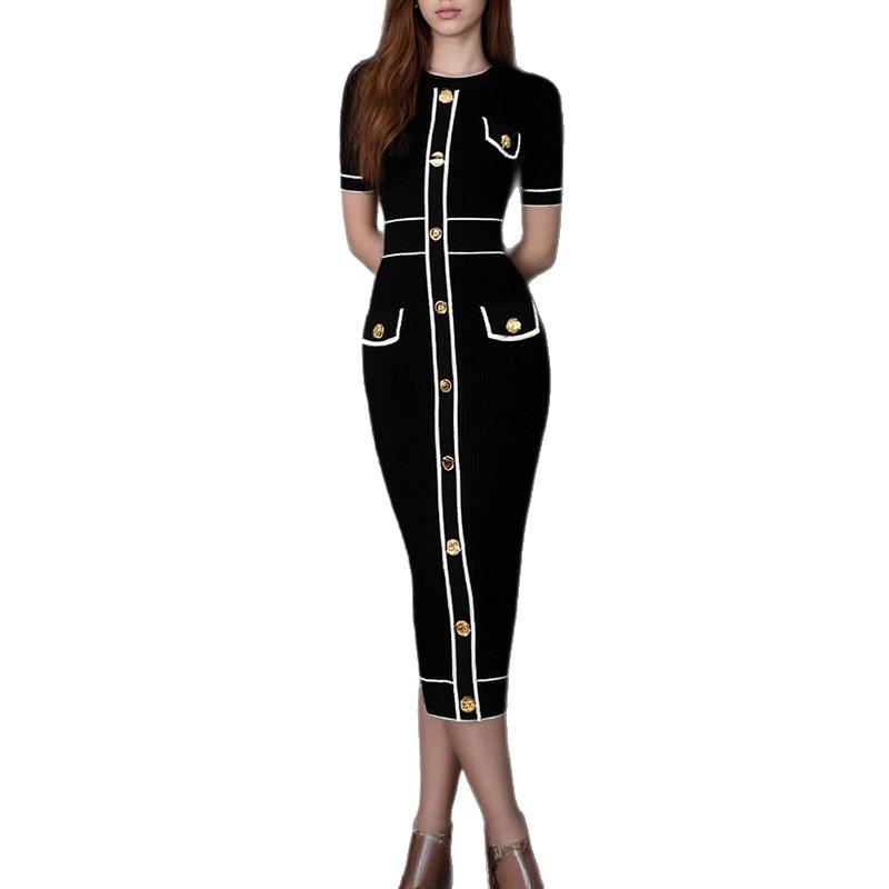 Elegant and stylish dress for women, 2025 new fashion, niche, light luxury, decorative buttons, waist cinching, slimming knit skirt