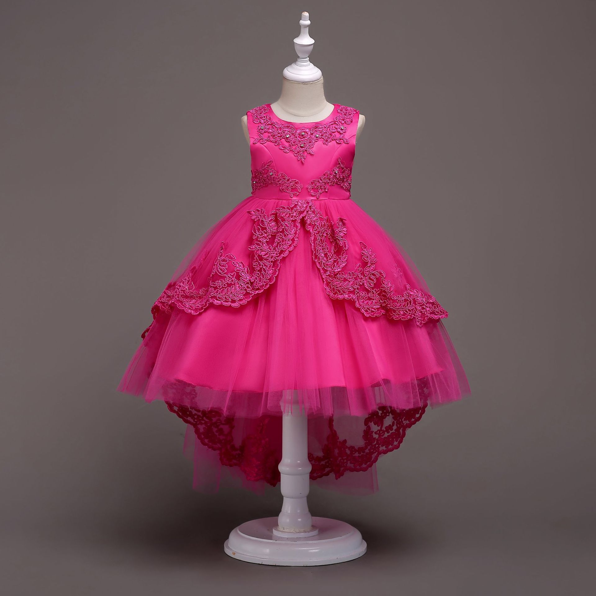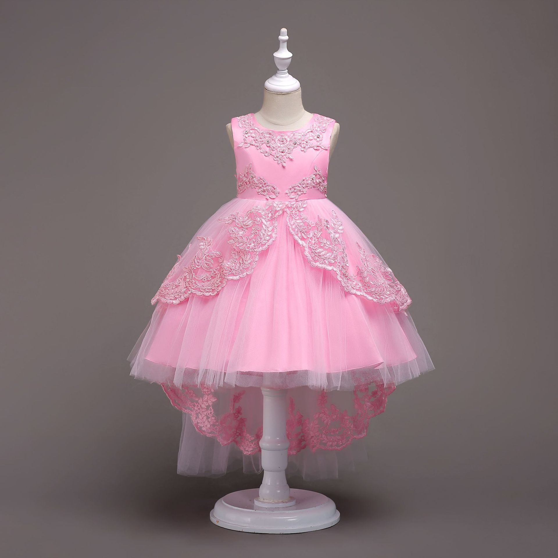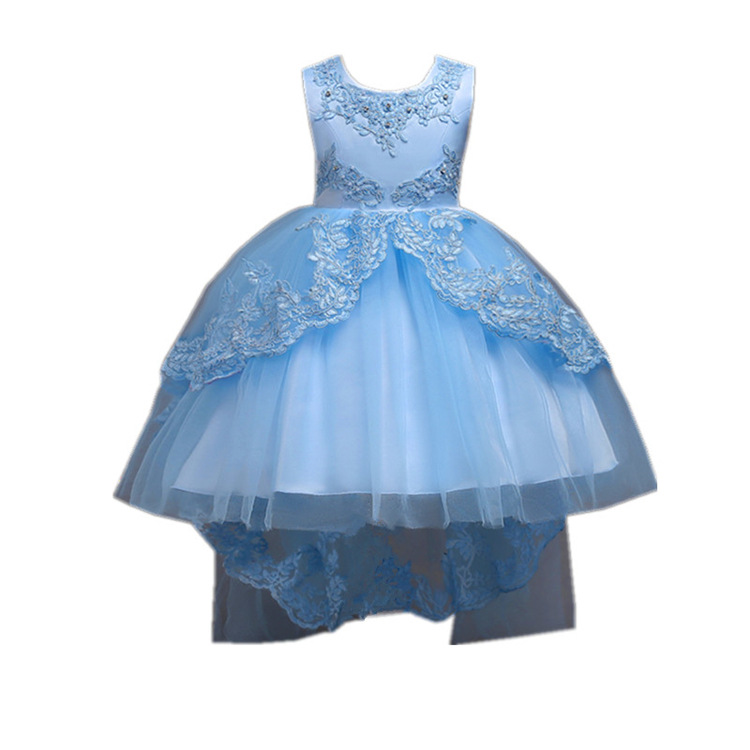 Cross border popular children's clothing, children's princess dress, high-end girls' embroidered trailing dress, flower girl wedding dress