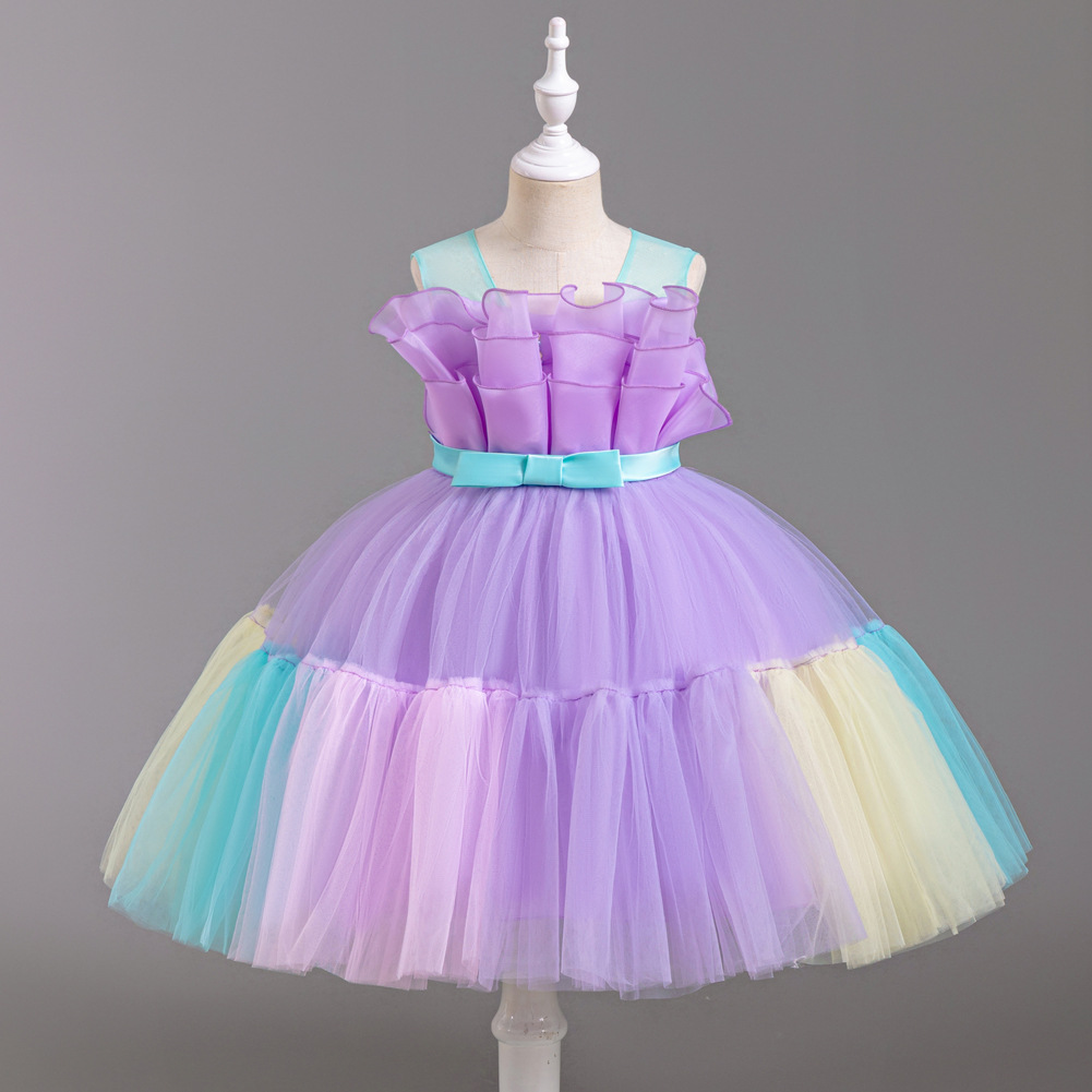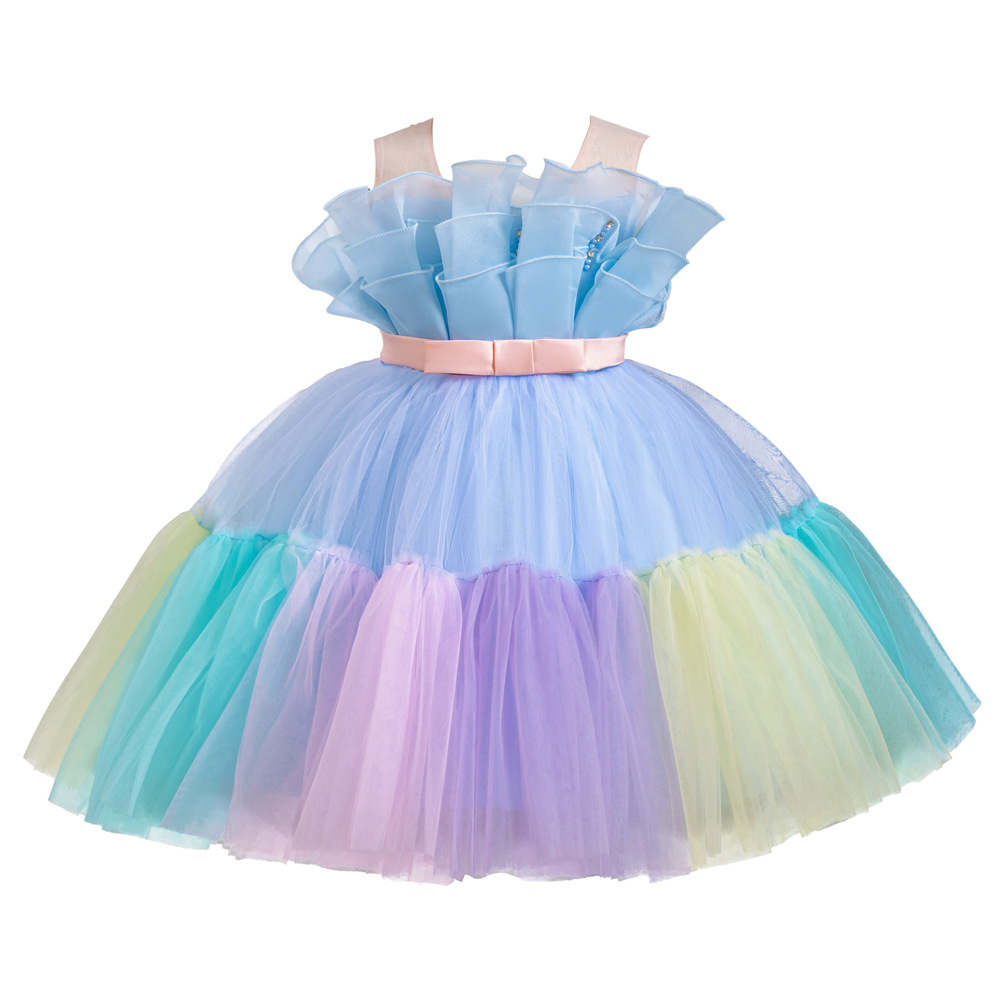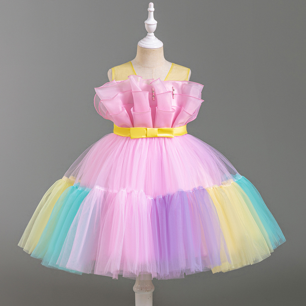 Children's Dress Show Princess Dress Flower Girl Wedding Gradient Color blocked Cake Dress Girl Piano Host Performance Dress