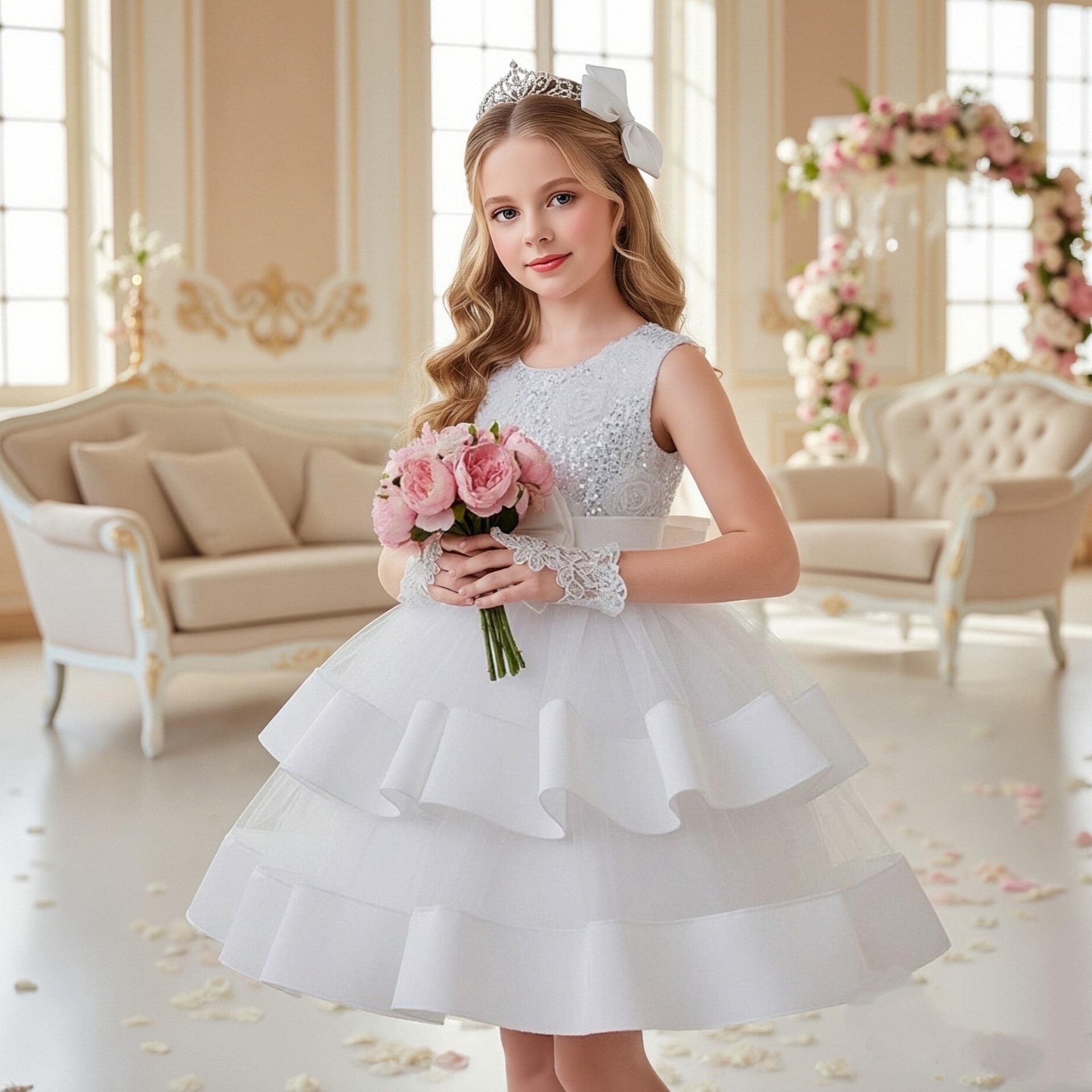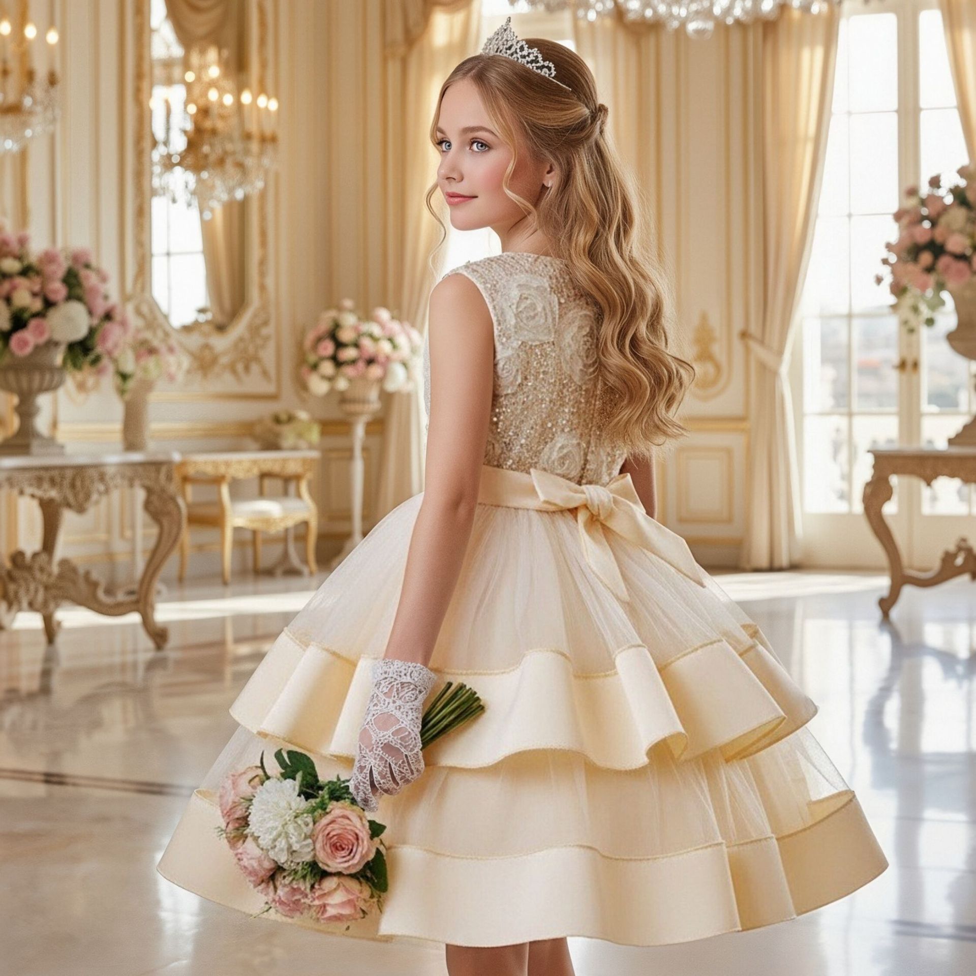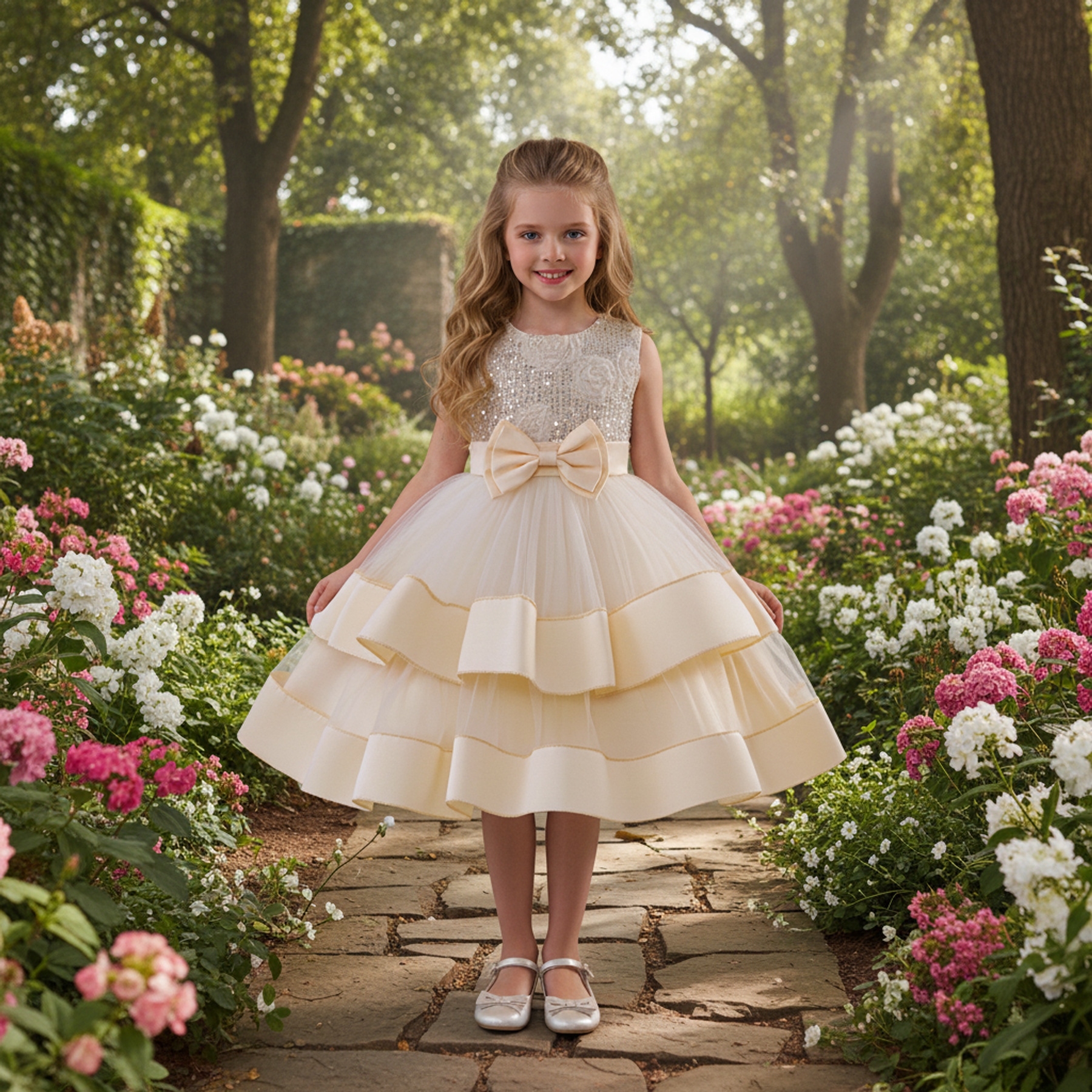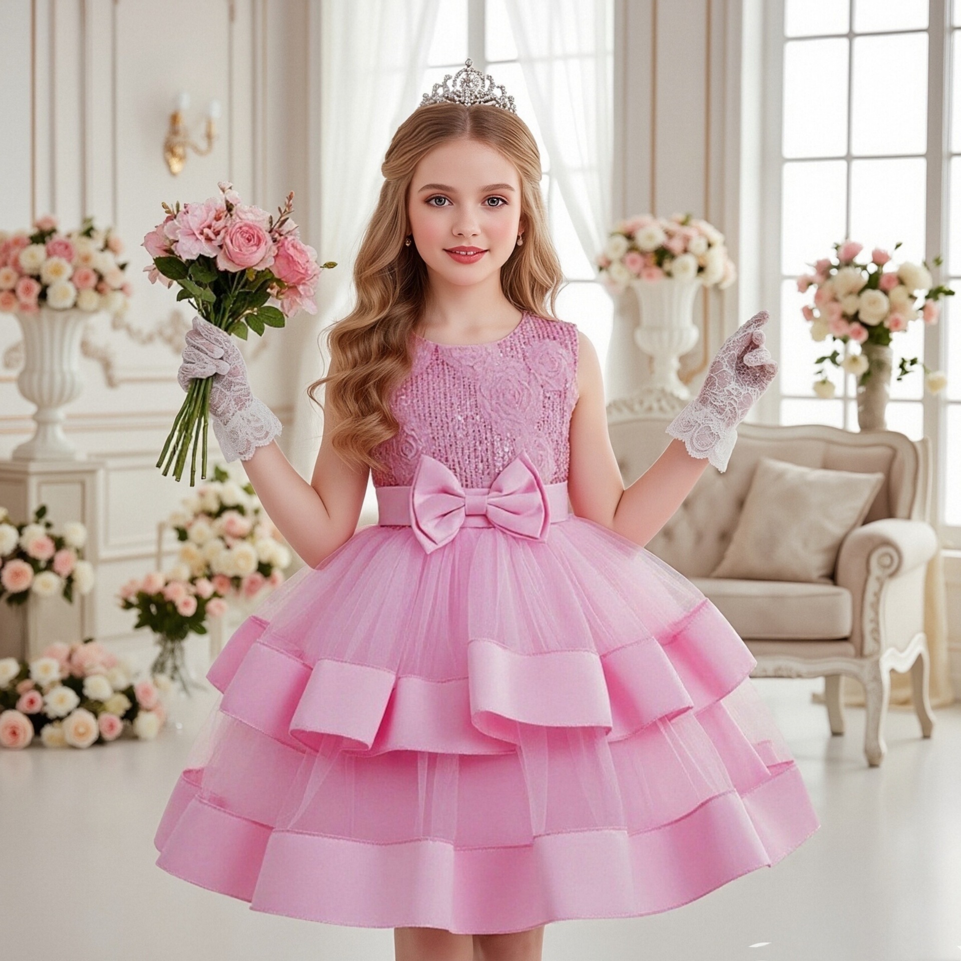 Children's Dress Flower Girl Princess Dress Rose Mesh Princess Dress Girl Dress Birthday Piano Performance Dress